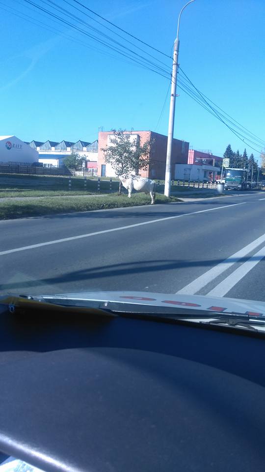 O văcuță paște liniștită de cel puțin oră în zona Broscărie, Sibiu. Un sibian a semnalat prezența ei pe pagina Info Trafic Județul Sibiu, de pe Facebook, iar cititorii au început deja să lase comentarii amuzante la adresa musafirului.