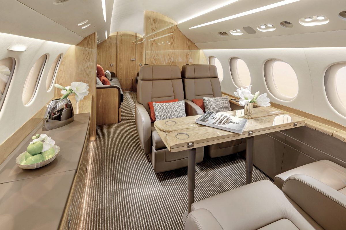 Avionul Dassault Falcon este un avion de tip jet, care poate primi la bord până la 14 persoane. Cele 14 fotolii/canapele se pot transforma în paturi, pentru șase persoane.