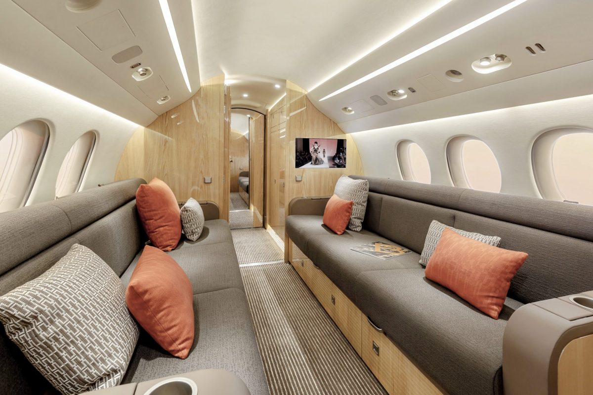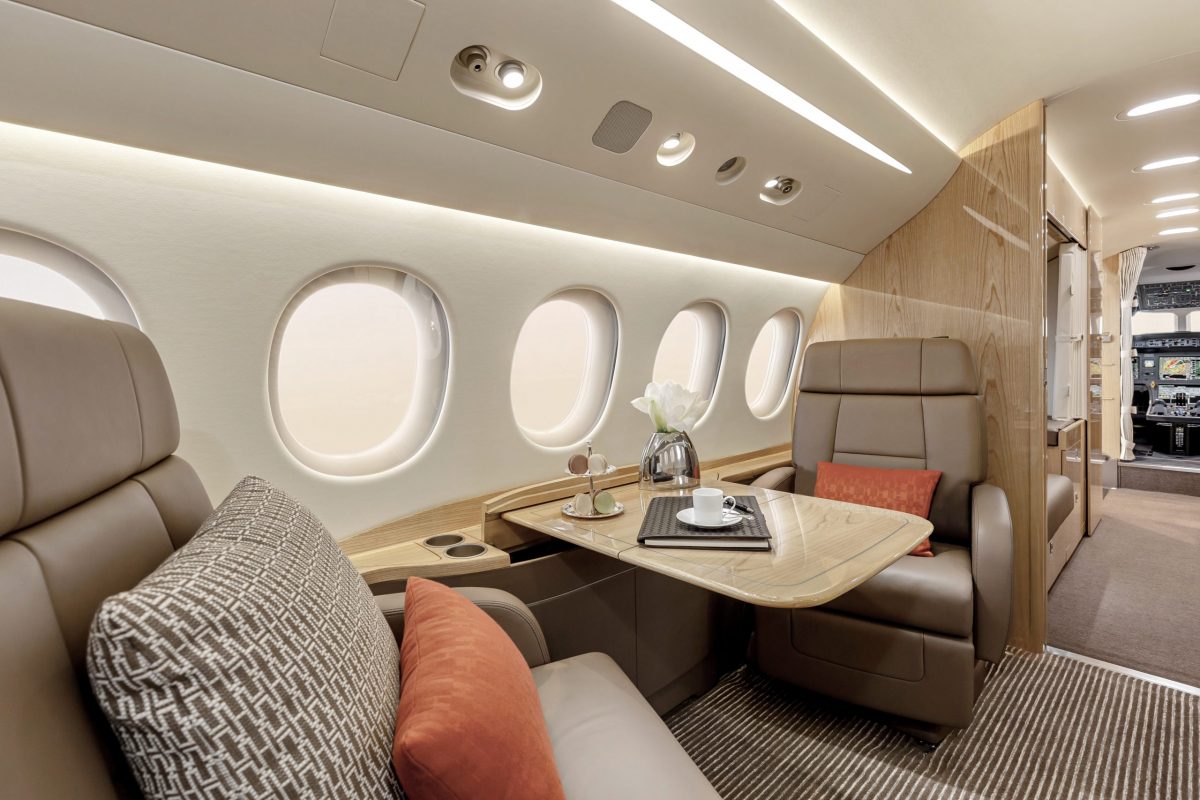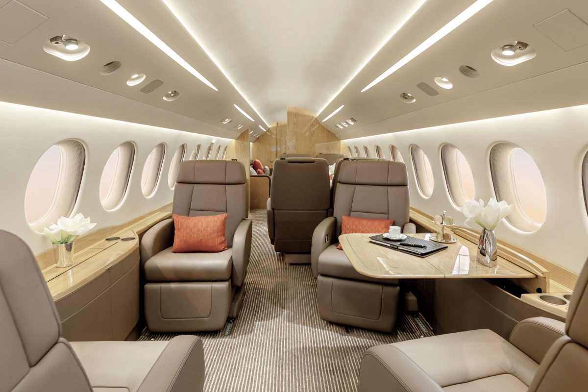 Avionul Dassault Falcon este un avion de tip jet, care poate primi la bord până la 14 persoane. Cele 14 fotolii/canapele se pot transforma în paturi, pentru șase persoane.