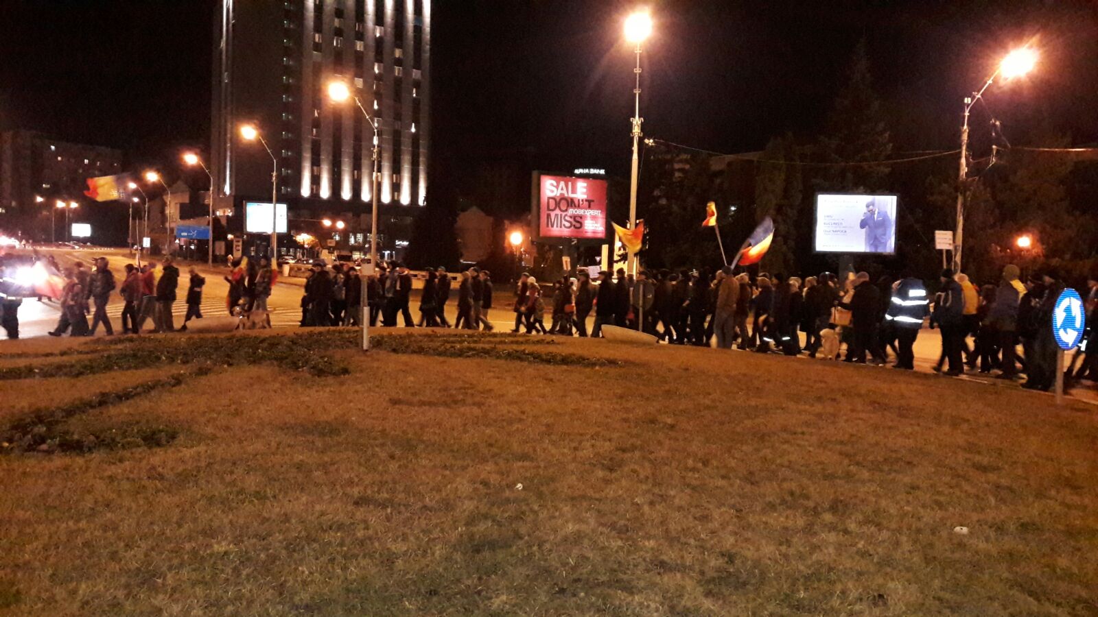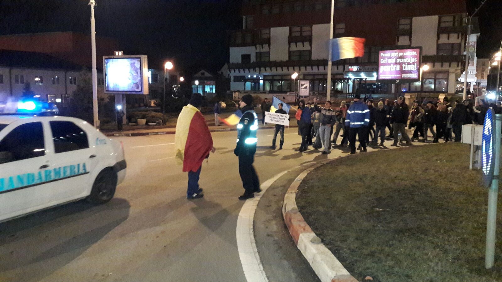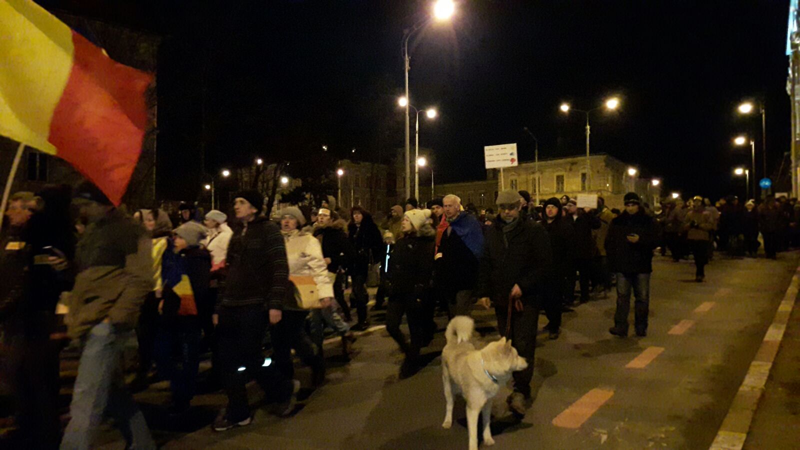 Scandând „Hoții”, „PSD Ciuma roșie” și „O dorință sinceră, România liberă”, protestatarii au făcut traseul scurt cu care s-au obișnuit în ultimele câteva zile, respectiv până la sensul giratoriu din Piața Unirii, iar apoi s-au întors în Piața Mare.