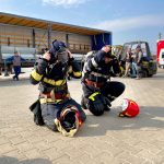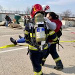 La acest exercițiu au participat peste 25 de pompieri militari și paramedici cu 5 autospeciale de stingere cu apă și spumă, descarcerare și de asistență medicală specializată.