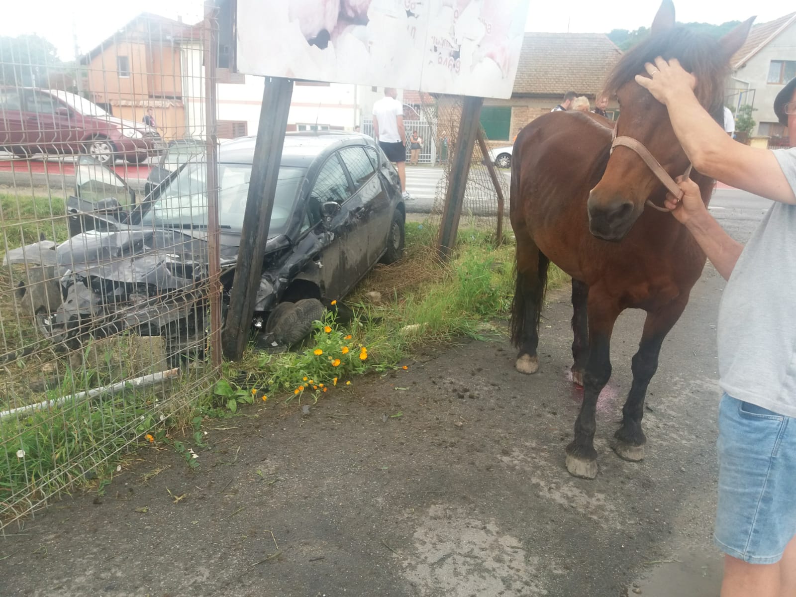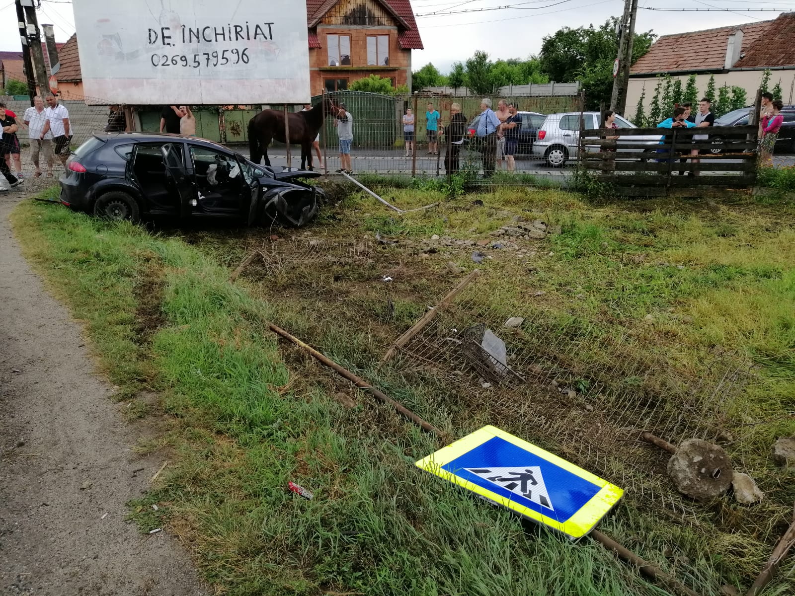 Accident în Cristian. O femeie a ajuns cu mașina într-o curte lovind un cal