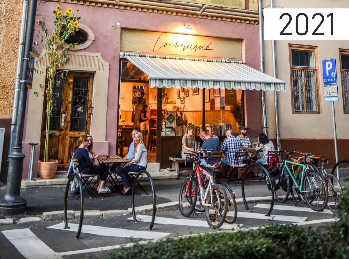 Proiectul “Cea mai frumoasă terasă din Sibiu”, ce a urmărit scoaterea în evidență a teraselor sezoniere amenajate cu bun gust din Sibiu, are și în acest an rolul de a găsi soluții și idei pentru îmbunătățirea Regulamentului local de amenajare și funcționare al teraselor sezoniere. Proiectul a fost inițiat în anul 2019, atunci când au avut loc mai multe întâlniri cu agenții economici dar și cu arhitecți, urbaniști și reprezentanți ai administrației locale. Propunerile făcute atunci de către specialiști nu au fost, însă, implementate deoarece noua realitate a pandemiei a obligat Primăria Municipiului Sibiu să se adapteze noilor cerințe de distanțare socială. Așa am ajuns ca, printr-o comparație a imaginilor realizate în 2019 vs. cele din 2021, să ne dăm seama că restricțiile impuse au adus și lucruri bune ce ar trebui păstrate și pe viitor, unul dintre acestea fiind tocmai mesele distanțate și spațiul mai mare oferit fiecărui client.