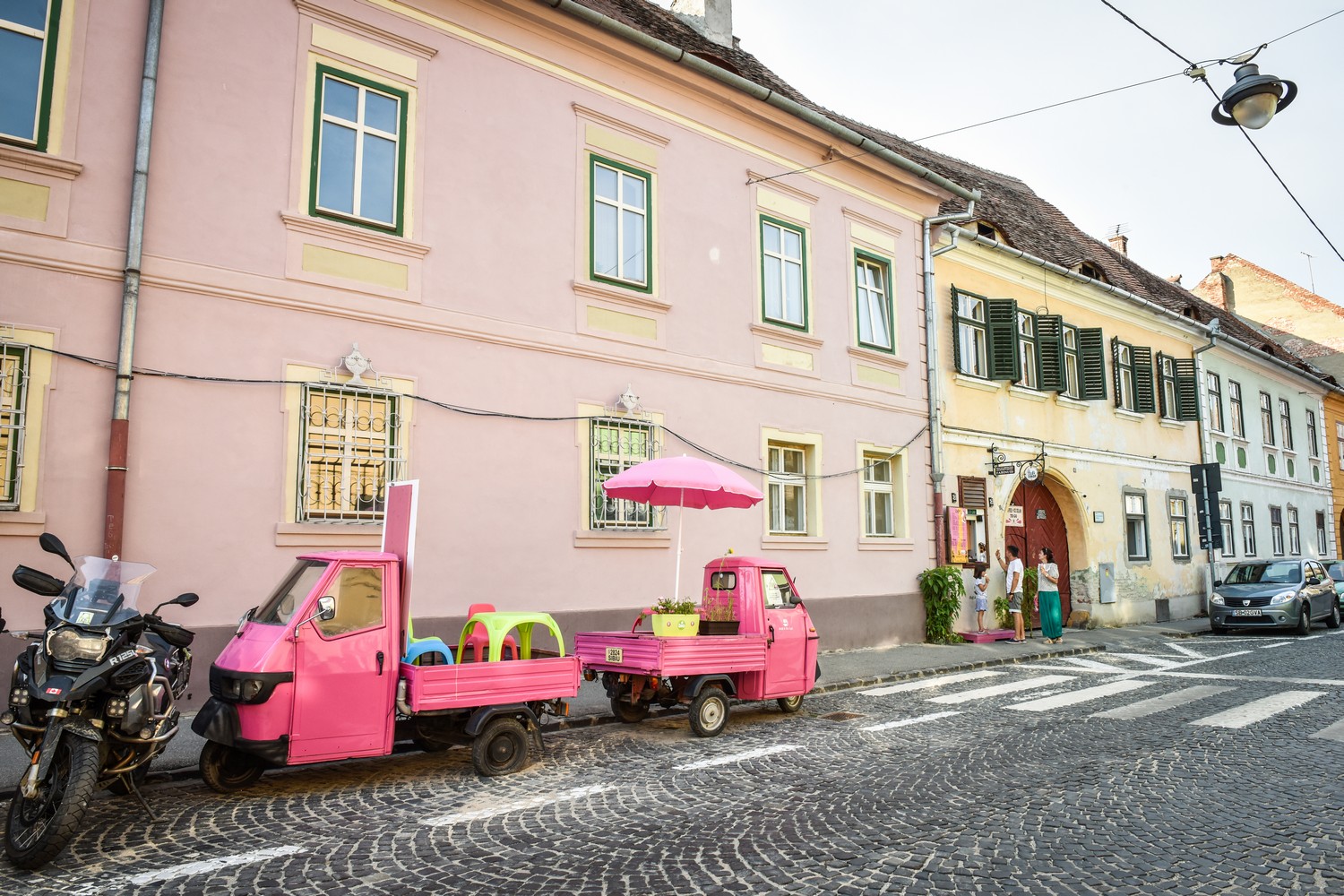 “În același gen de masură, legându-ne de această dată de marcajele rutiere, avem o propunere și în cazul terasei Heiss-Eis Café de pe str. Tipografilor. Aici, trecerea de pietoni din dreptul gangului care duce la Sala Thalia ar putea fi mutată câțiva metri, astfel încât cele două tricicluri roz să poată sta în fața geamului clădirii care joacă rolul de ghișeu pentru servirea comenzilor. Ideea și conceptual original al acestei mici terase a fost apreciat de membrii juriului și poate era mai bine punctată și de către sibieni dacă nu avea acest handicap compozitional.” a mai adăugat dl. arh. Țibuleac.