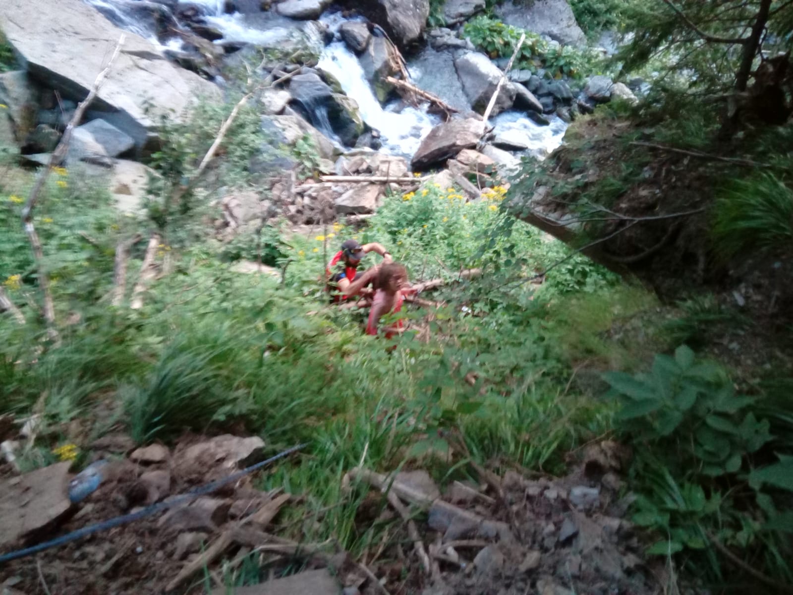 Cea de-a doua intervenție a fost pentru o femeie care a căzut în râpă cu câinele, pe poteca turistică de la Bâlea Cascadă, în jurul orei 20.