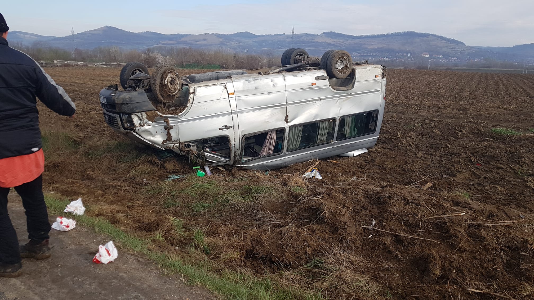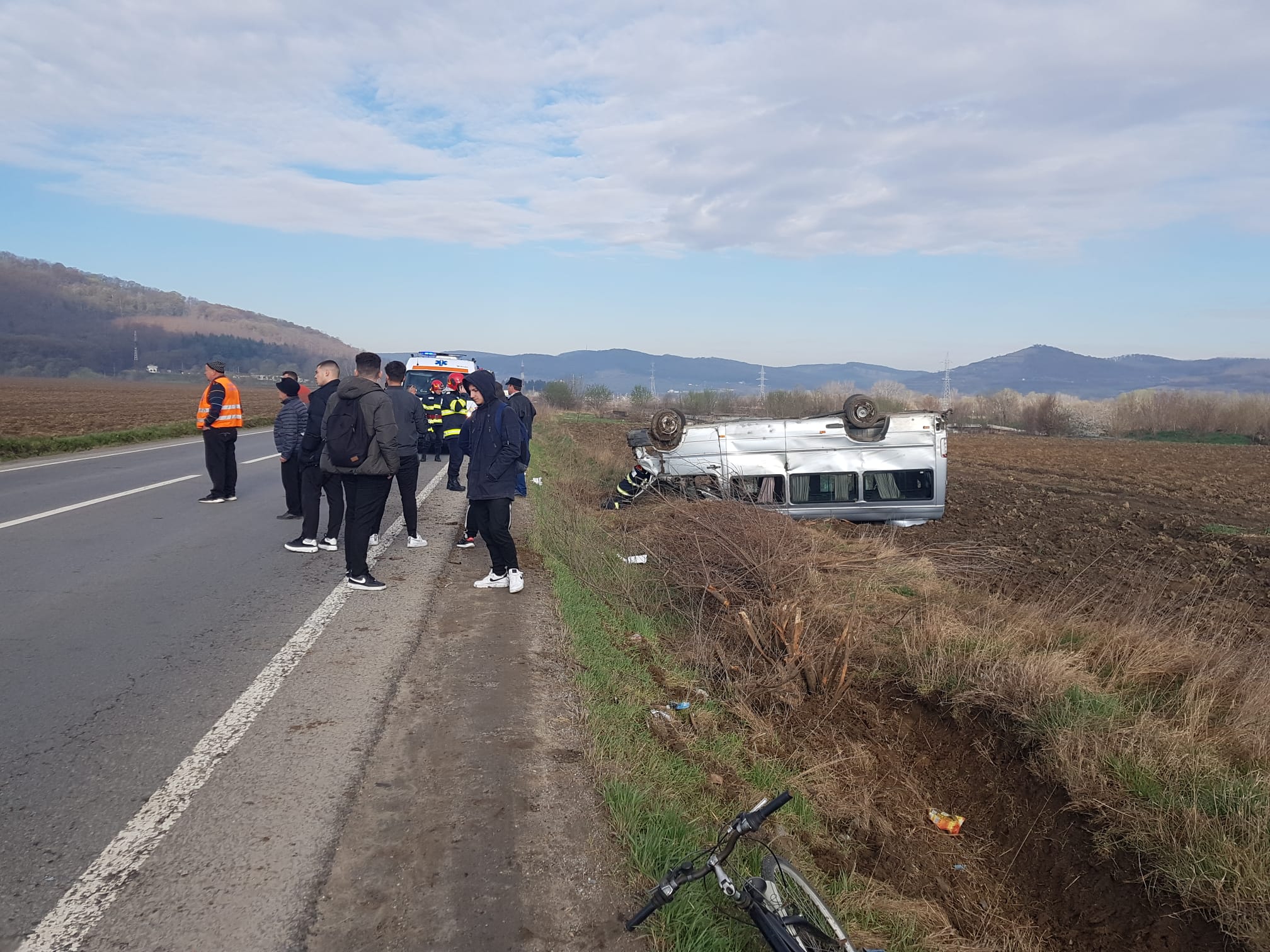 12 persoane au fost implicate într-un accident rutier după ce un microbuz pentru transport persoane s-a răsturnat, marți dimineața, între Mediaș și Brateiu.