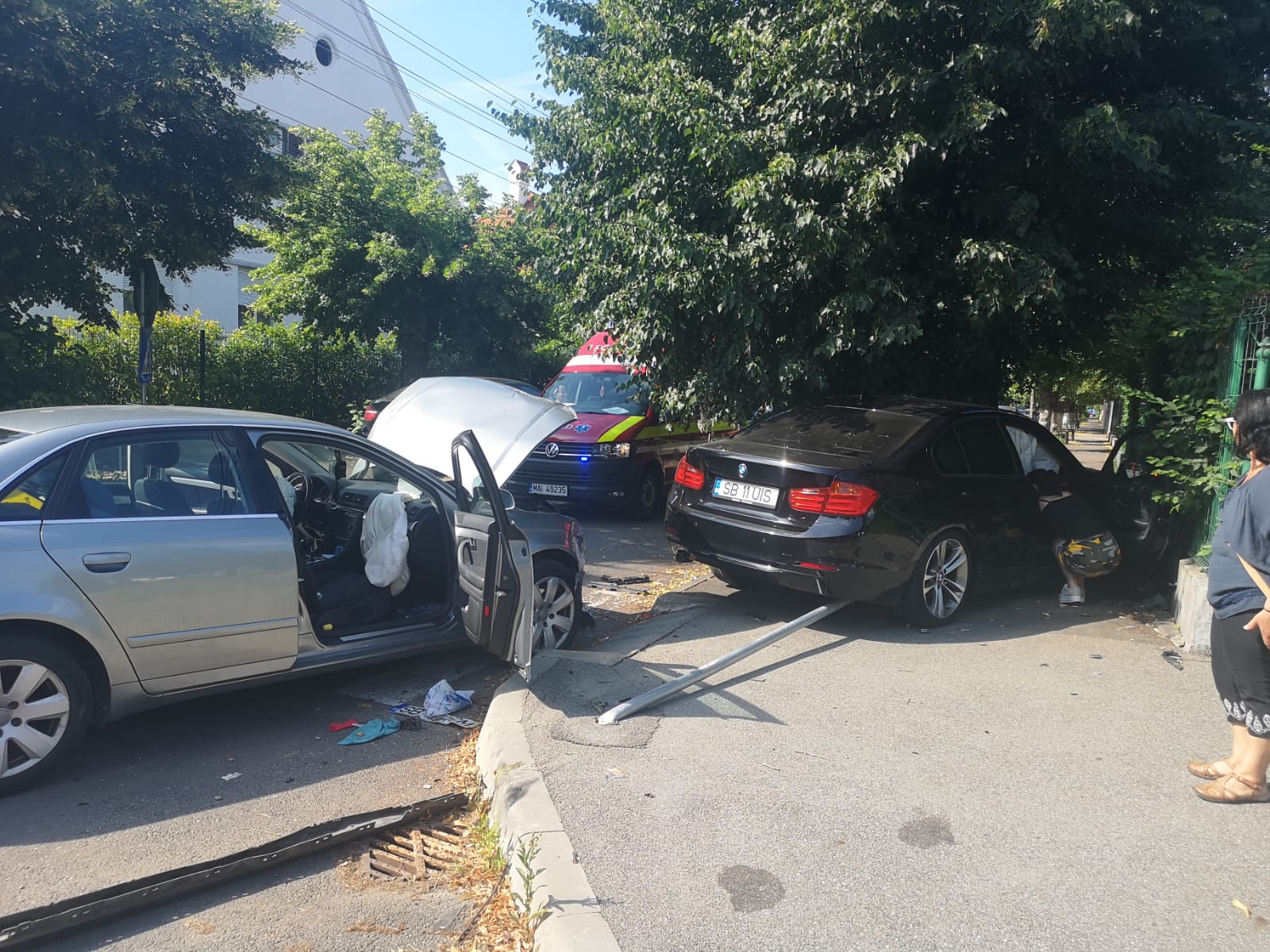 Inspectoratul pentru Situații de Urgență Sibiu a intervenit, joi după amiaza, cu un echipaj SMURD în municipiul Sibiu, pe strada Jina la un accident rutier produs între două autoturisme.