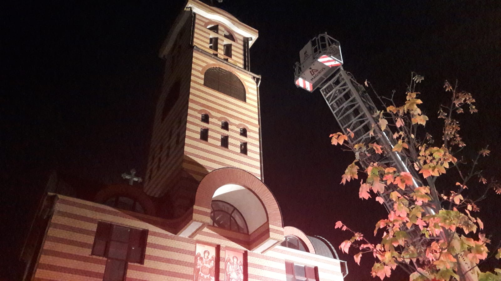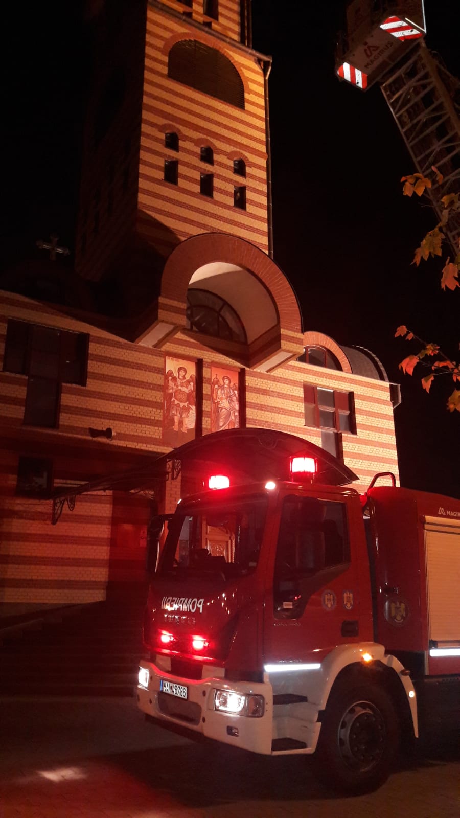 Pompierii sibieni au intervenit, duminică seara, cu autospeciale de stingere și autoscara în municipiul Sibiu, pe strada Maramureșului pentru localizarea și stingerea unui incendiu izbucnit în turnul bisericii.