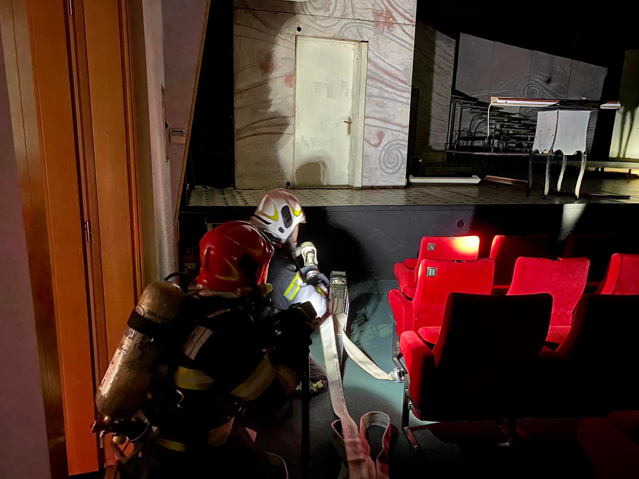 „Din păcate, trei persoane au fost surprinse de izbucnirea incendiului în sala de spectacole și au fost evacuate, în siguranță de către salvatorii sibieni. Acestea au fost evaluate medical și au primit îngrijiri medicale la fața locului de către personalul specializat. La acest exercițiu au participat peste 25 de pompieri militari și paramedici cu 5 autospeciale (stingere cu apă și spumă, descarcerare și de asistență medicală specializată)”, a precizat sergentul major Andreea Ştefan, purtătorul de cuvânt al ISU Sibiu.
