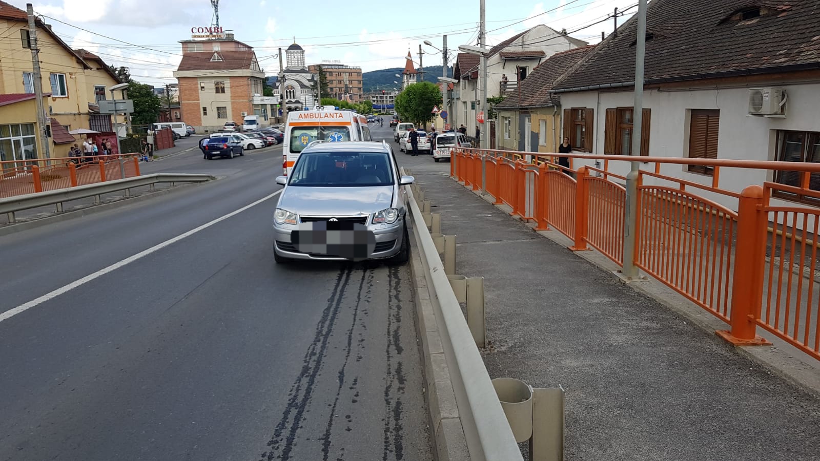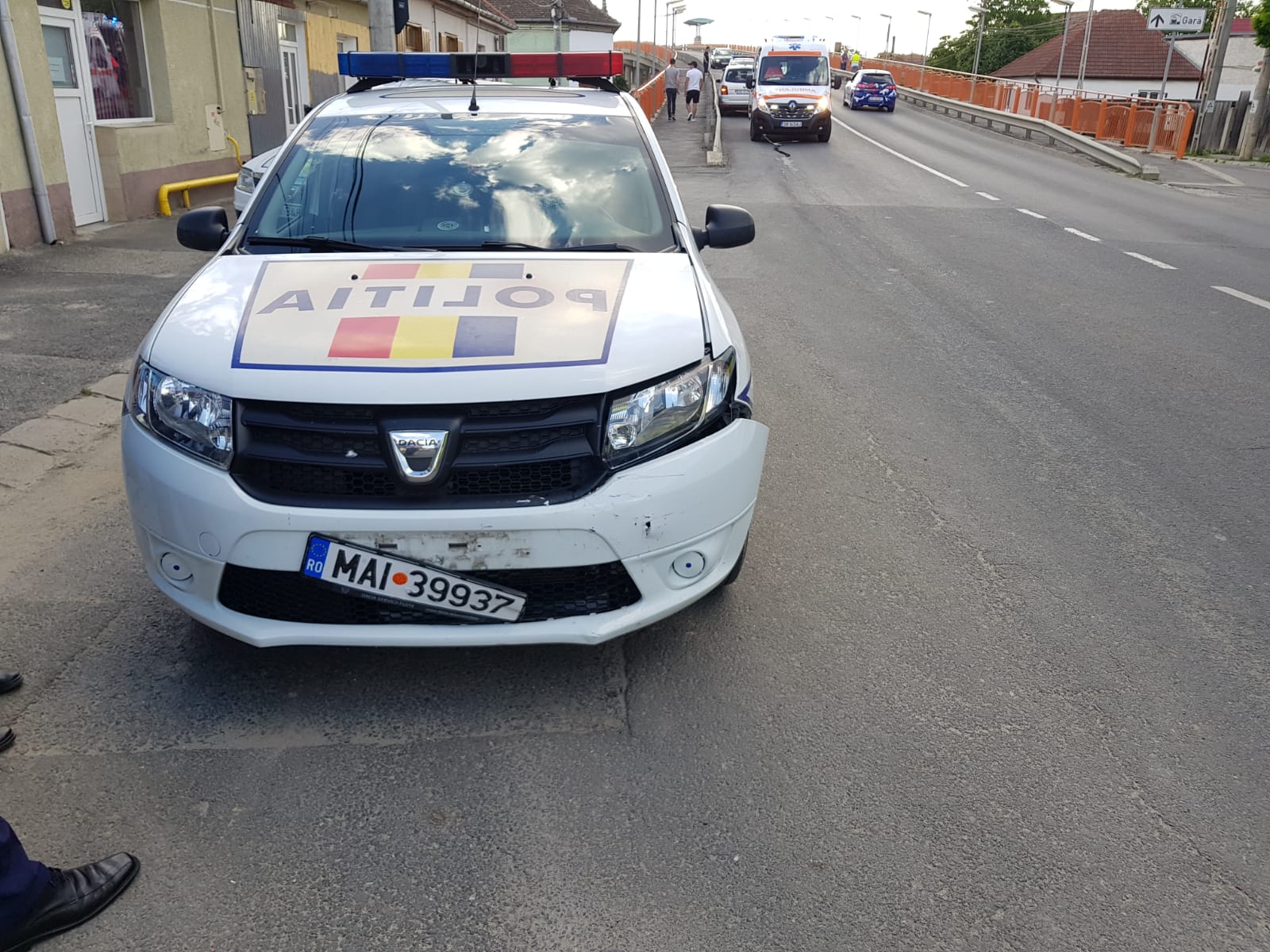 UPDATE – Șoferul care s-a simțit rău și a lovit mașina de Poliție, un sibian de 62 de ani, a decedat la spital. Traficul a fost reluat pe Podul Gării.