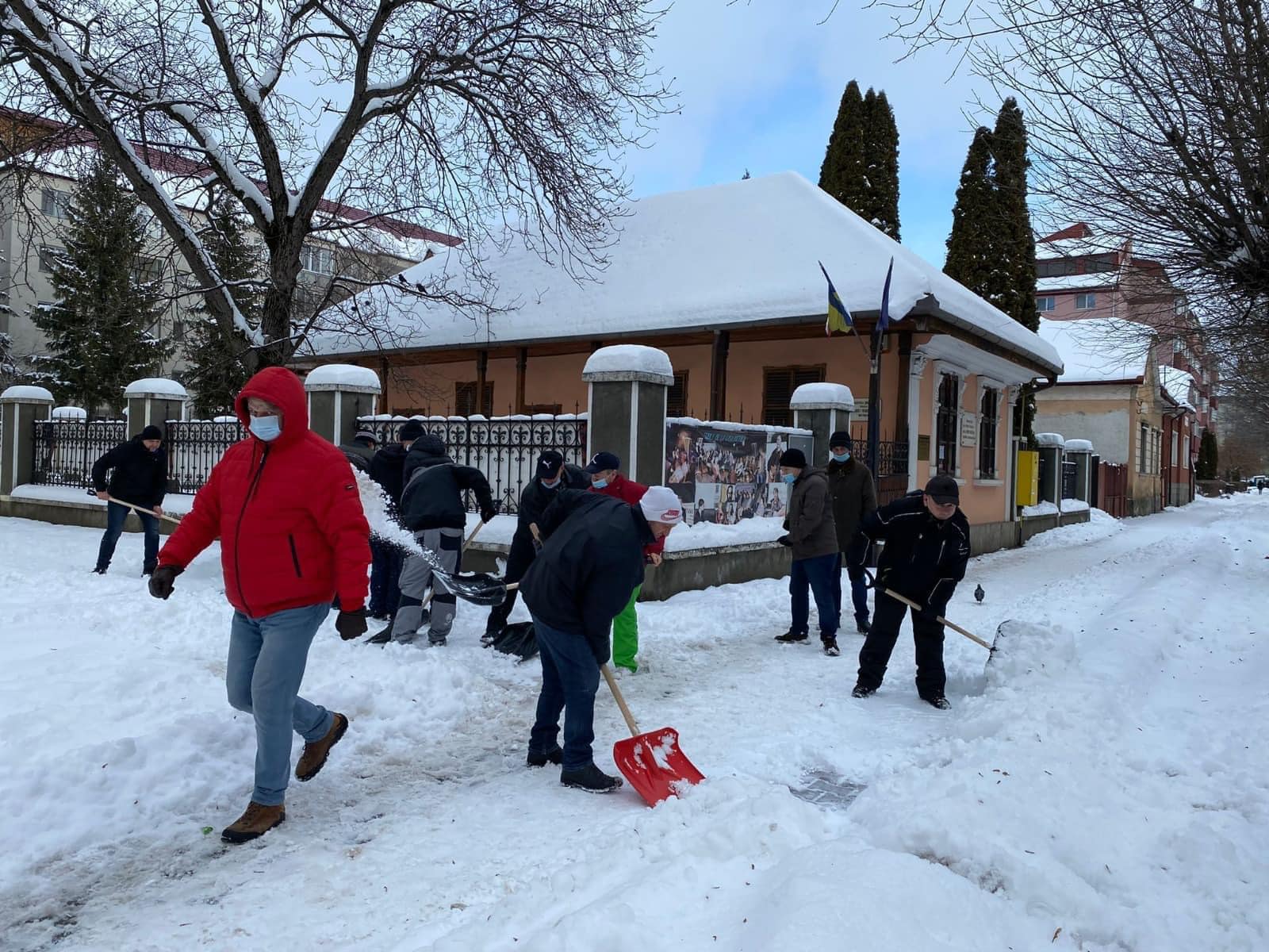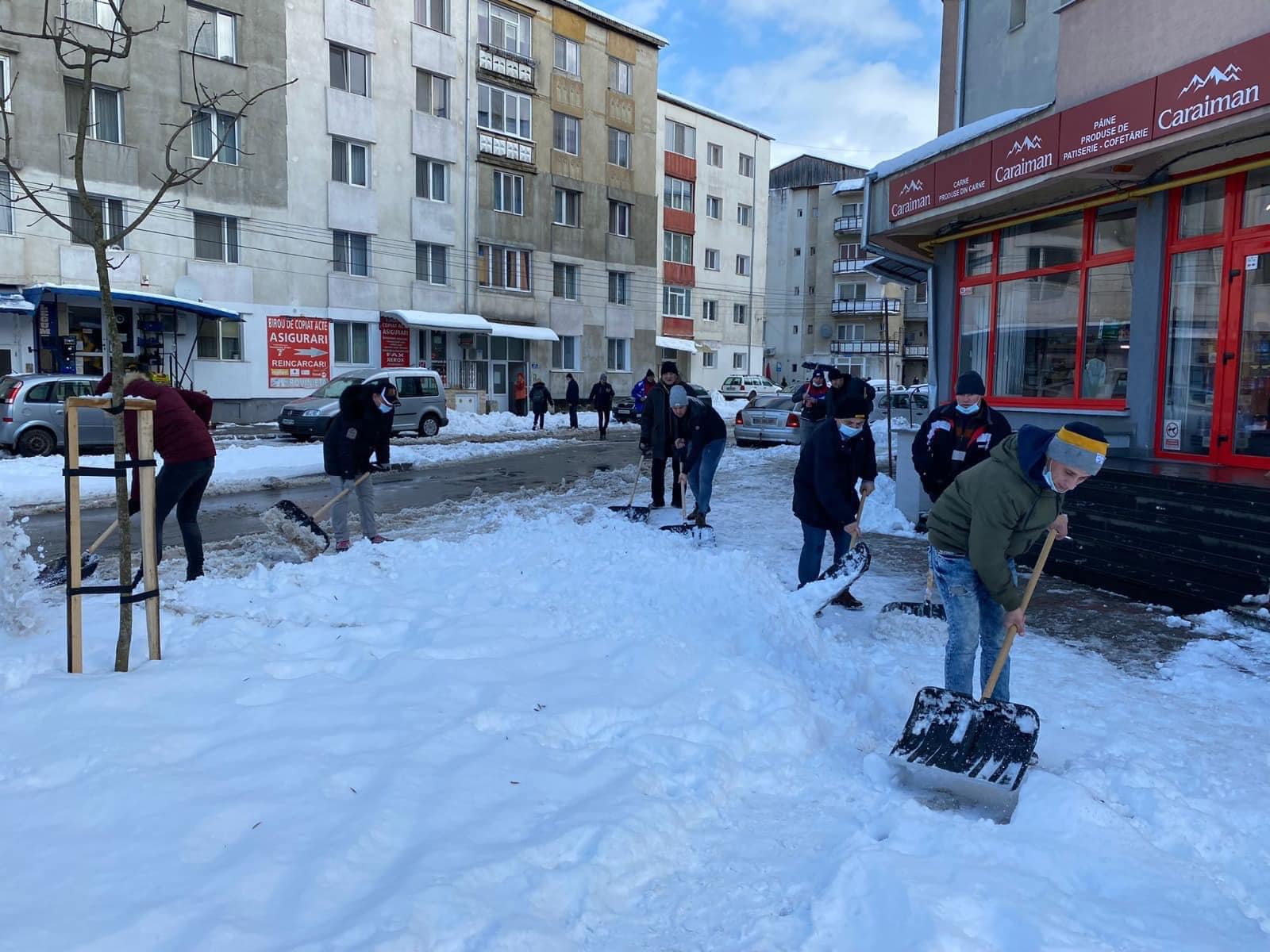 Edilul a postat pe pagina sa de socializare un mesaj legat de mobilizarea angajaţilor din primărie şi fotografii în care poate fi văzut utilizând o lopată pentru îndepărtarea zăpezii, înconjurat de subordonaţi.
