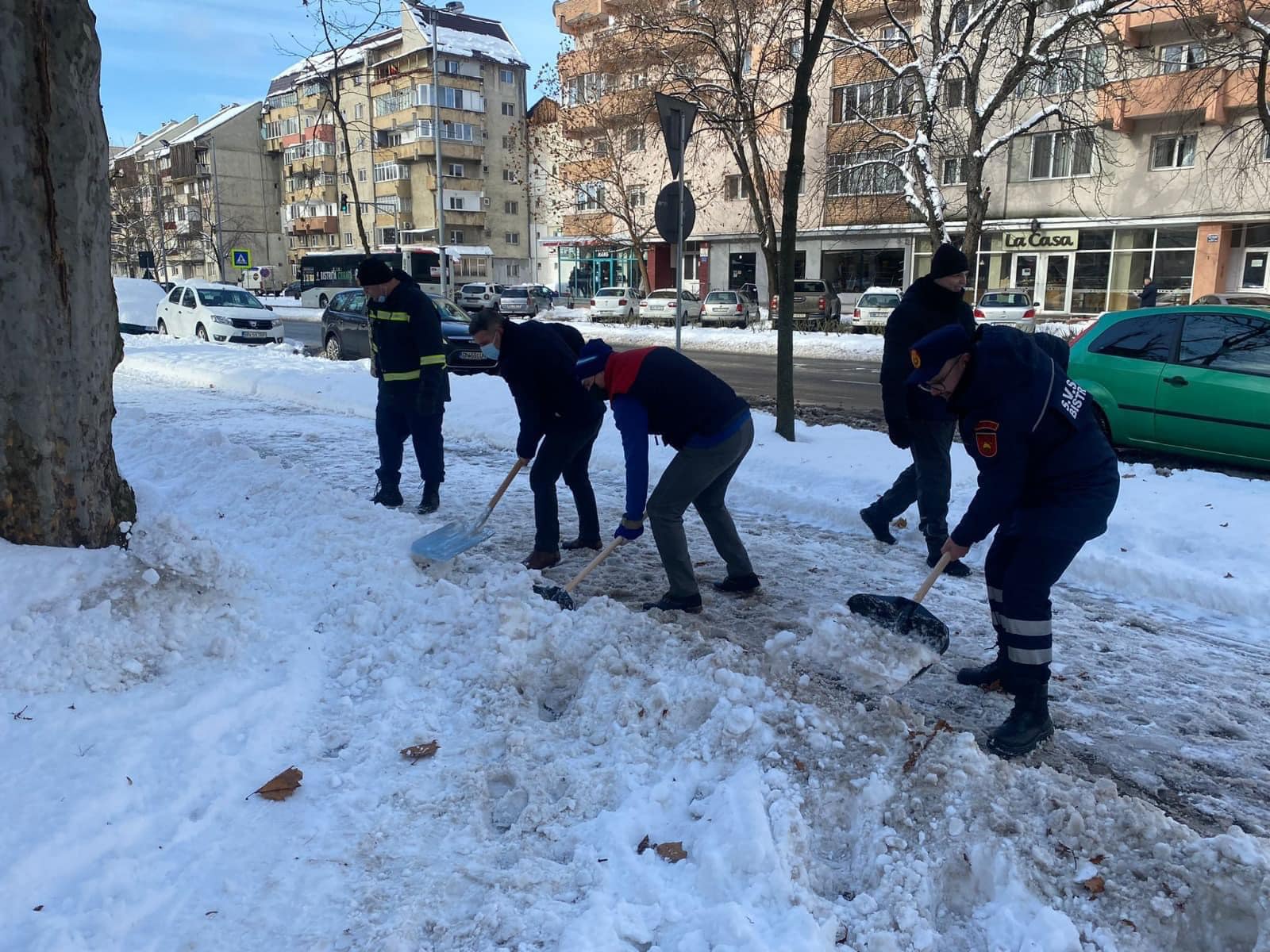 „Având în vedere ninsorile abundente din ultimele zile, am decis mobilizarea angajaţilor din Primăria Bistriţa la efortul comun de deszăpezire. Echipe de la Direcţia de Servicii Publice, SVSU şi Spaţii Verzi au acţionat azi încă de la ora 5,30, iar de la ora 10,00 li s-au alăturat şi oameni din aparatul de specialitate al primarului, viceprimarii şi funcţionari din direcţiile subordonate, plus poliţişti locali.