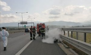 O motocicletă a ars în totalitate, vineri după – amiază, pe A1.