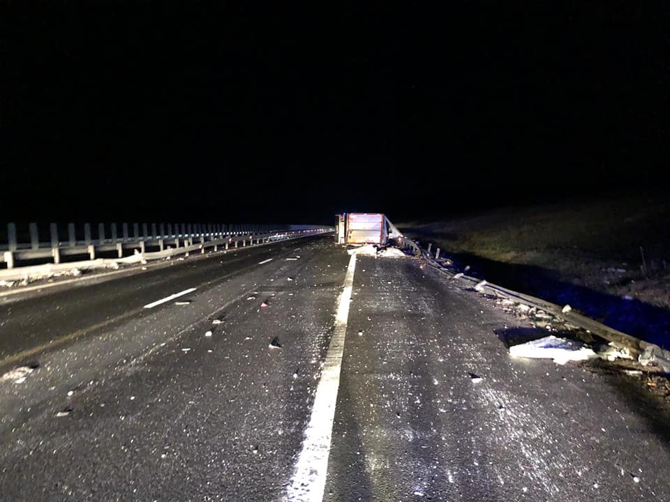 Un bărbat a murit, duminică noaptea spre luni, în județul Sibiu, pe Autostrada A1, Sibiu – Sebeș, după ce autocamionul pe care îl conducea s-a răsturnat între Aciliu și Apoldu. Poliția nu a elucidat condițiile în care s-a produs accidentul.