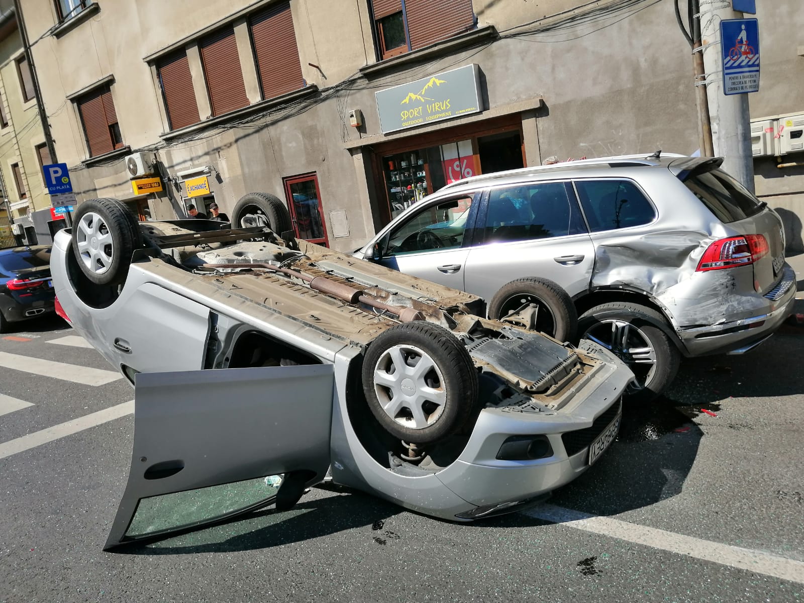 Șoferul unui autoturism condus din Piața Unirii spre Calea Dumbrăvii a intrat în sensul giratoriu pe banda 2, a virat pe banda 1 pentru a circula pe Calea Dumbrăvii, a acroșat autoturismul condus regulamentar pe banda 1, s-a răsturnat și apoi a lovit un autoturism parcat. Șoferul care a produs accidentul rutier a primit îngrijiri medicale din partea unui echipaj SMURD Sibiu și a fost transportat la spital. Polițiștii rutieri sunt la fața locului și au demarat cercetările.