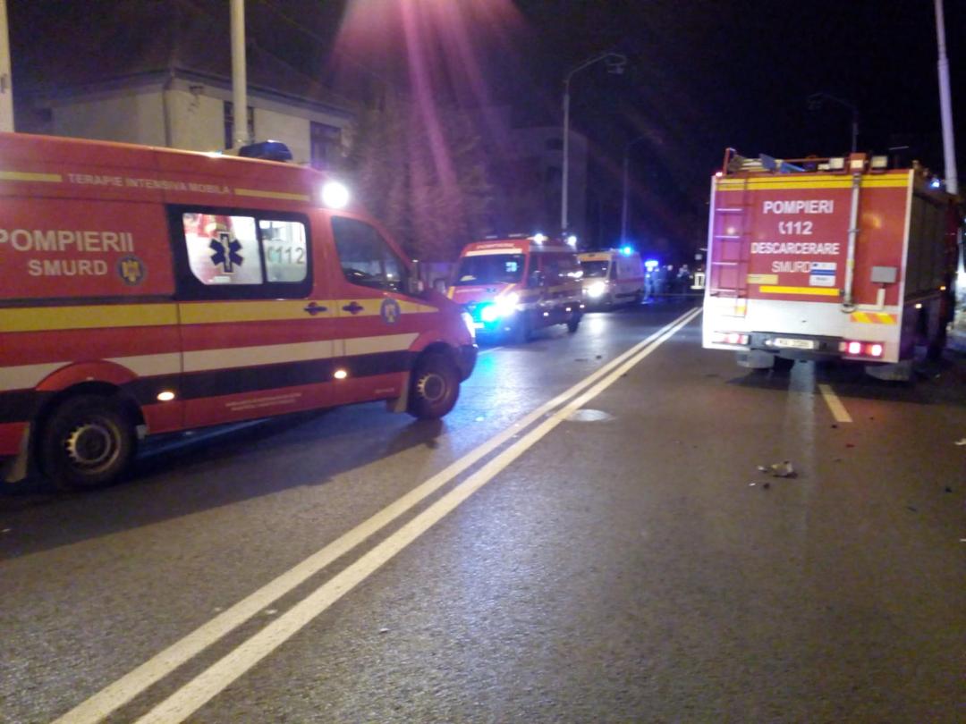 Pompierii sibieni au intervenit de urgență cu mai multe echipaje pentru acordarea primului ajutor persoanelor rănite.