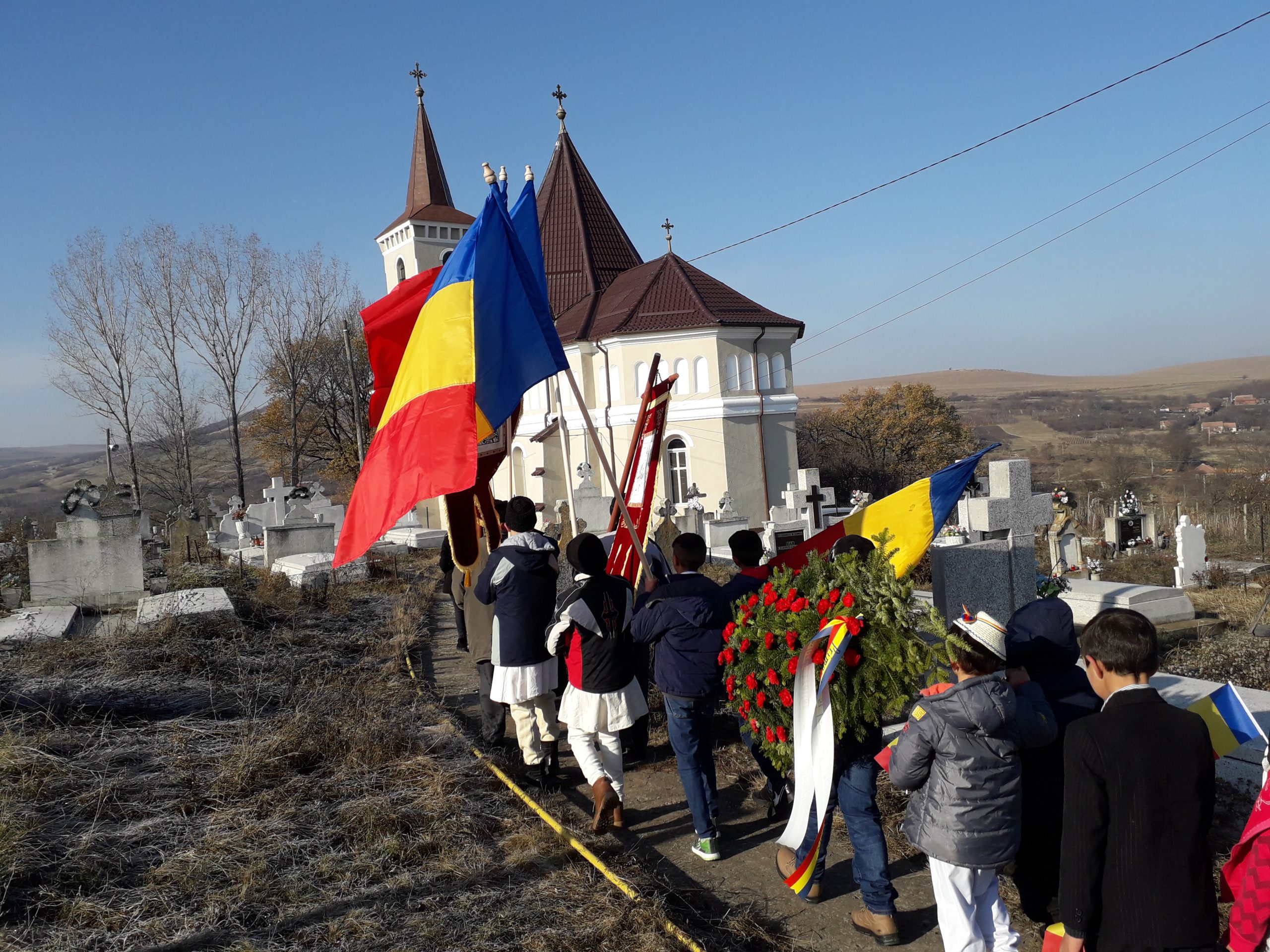 Astfel se face că, în 1 decembrie 2018,  pe un ger năpraznic, în sunetul clopotelor celor două biserici, 60 de copii de grădiniță și școală primară și gimnazială, îmbrăcați în straie de sărbătoare, cu steaguri, stegulețe și coroane de flori, însoțiți de preotul Greco-catolic Nicolae Șerban, de învățătoarele Leontina Bratu, Solomon Ana, Șerban Florența și Hadar Gabriela, au depus în cele două cimitire candele aprinse la mormintele eroilor noștri, ale căror cruci erau împodobite de coroniţe cu tricolor.