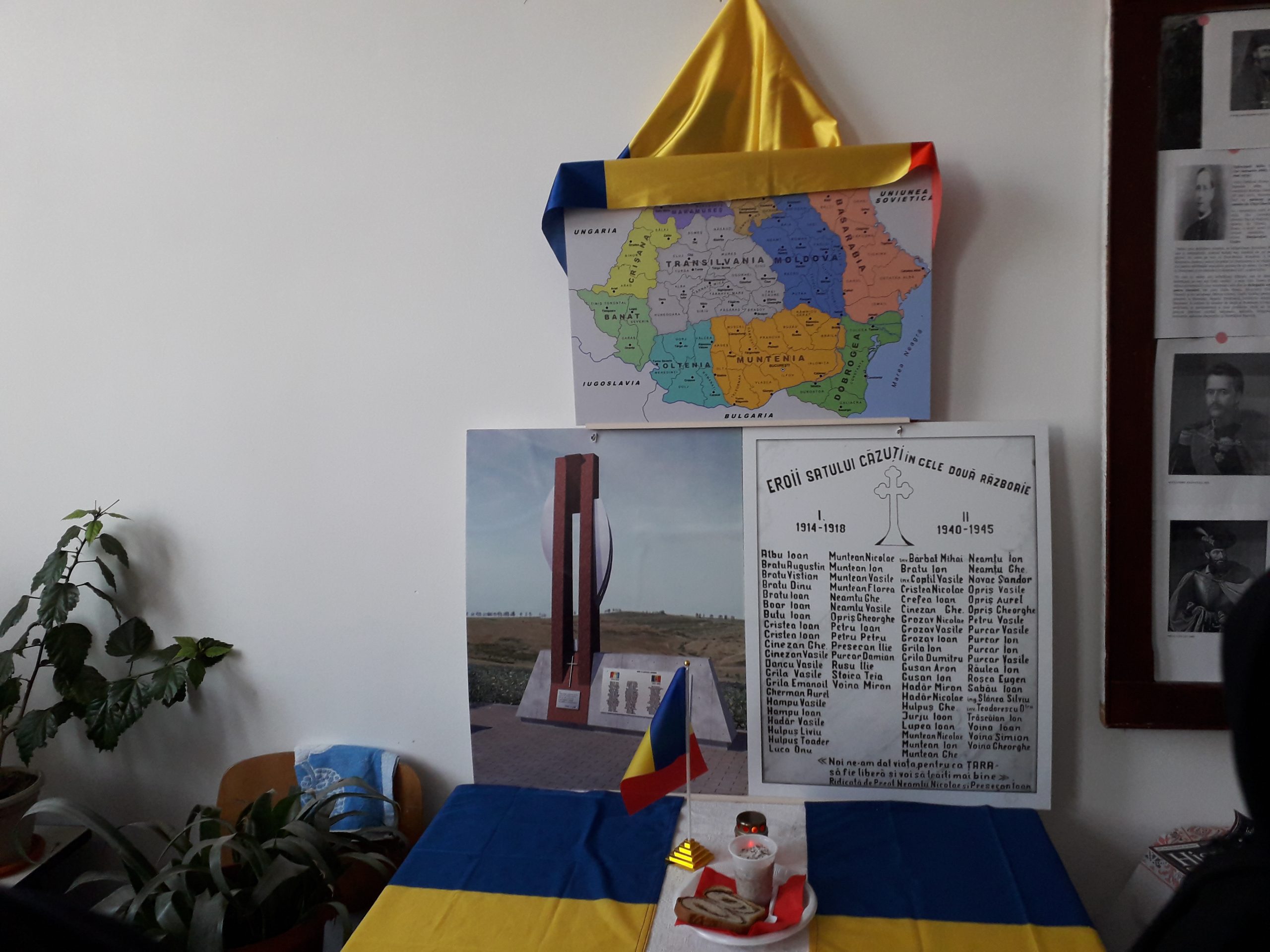 Aflându-mă în şcoala satului în luna noiembrie 2018, amintind de eroii noștri,  mare mi-a fost  bucuria că  am găsit mult entuziasm şi dăruire la dăscăliţele prezente, atât la cele aflate activitate, cât şi  la  cele pensionate,   în pregătirea  unui program cu preșcolarii și școlarii claselor I-VIII,  dar  și a unei expoziții etnografice.
