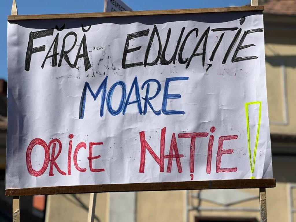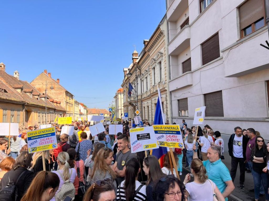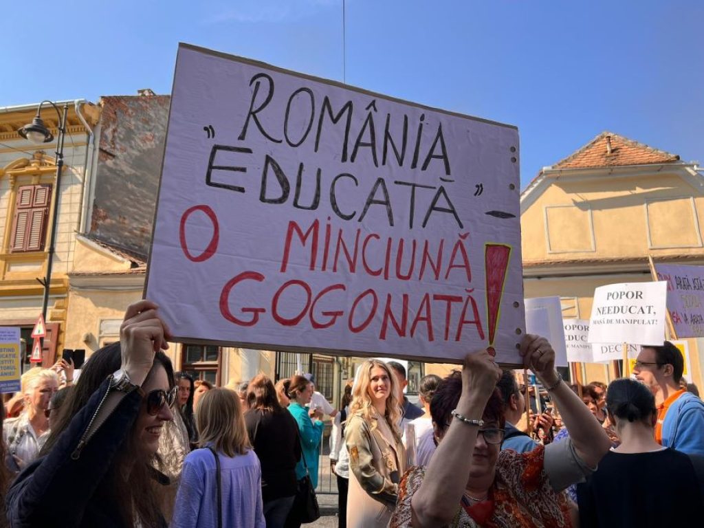 Peste 1.000 de profesori și câțiva zeci de copii protestează în acest moment în fața Prefecturii Sibiu. Sunt dascăli de la toate școlile din oraș, cărora li s-au alăturat câțiva zeci de profesori din Mediaș și Agnita. Ei cer nu doar o salarizare decentă a sistemului de învățământ, ci și o atenție ceva mai asumată din partea Guvernului în ceea ce privesc investițiile și fondurile alocate școlilor, pentru ca actul educațional să poată fi desfășurat în condiții optime.