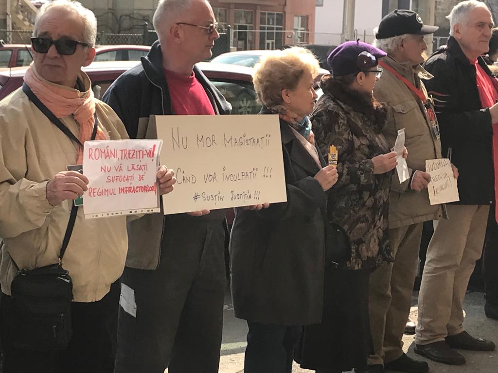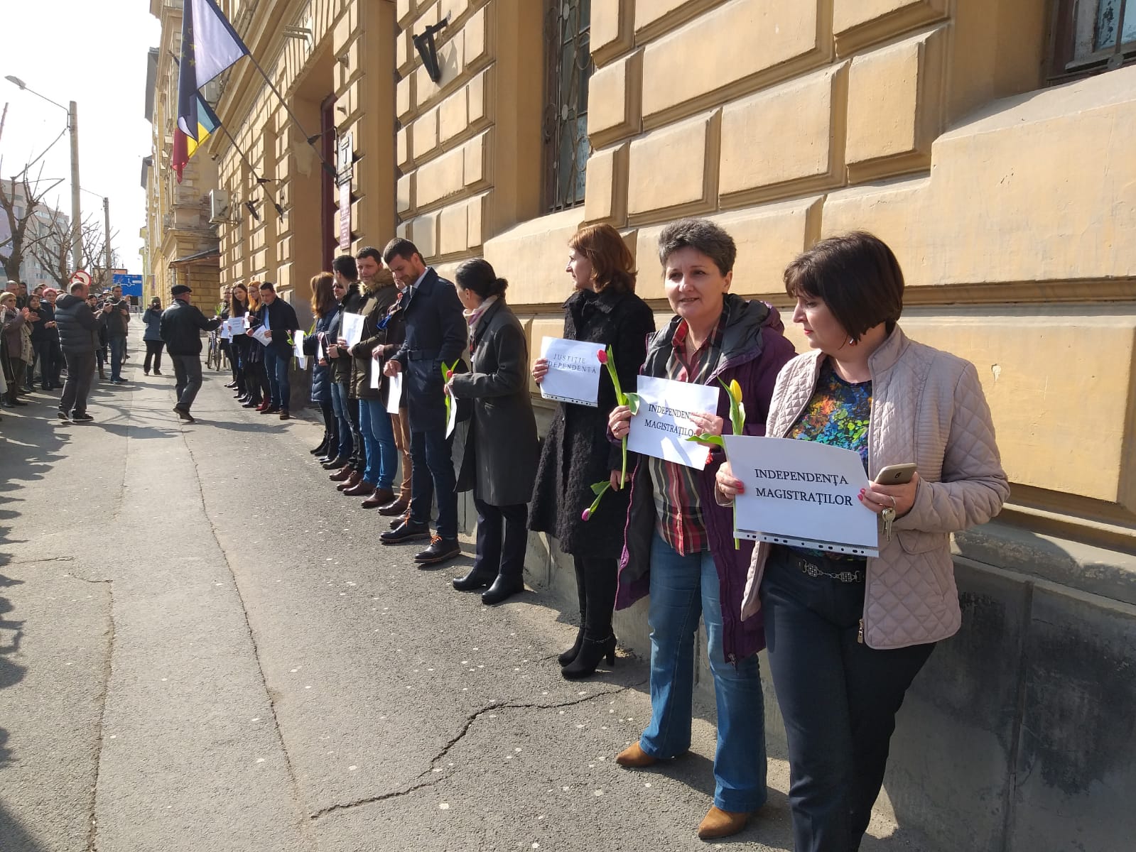 Magistrații continuă să protesteze împotriva modificărilor aduse Legii Justiției. Astăzi, 1 martie au fost anunțate proteste în toată țara. La Sibiu, în jurul orei 12:00, aproximativ 20 de judecători au protestat mut în fața tribunalului. Aceștia au fost susținuți de circa 60 de membri ai mișcării „Vă vedem”. Protestul a durat 20 minute, timp în care susținătorii judecătorilor au scandat lozinci precum „Justiție nu corupție”, „Cinste lor, cinste Magistraților” sau „Guvern de hoți și de mafioți”.