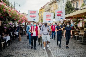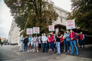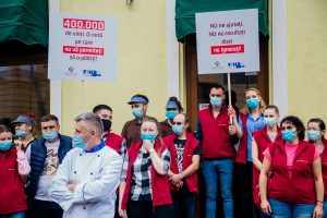 Timp de o oră, restaurantele din Sibiu și-au întrerupt activitatea și au afișat pancarte pe care au scris: „60.000 de cazuri confirmate de COVID. Noi suntem 400.000!”, „Specialitatea Orban – 40.000 de firme cu aromă de faliment!”, „Nu omorâți viitorul unei industrii cu un prezent la care nu vă pricepeți!”, „Suntem 40.000 de firme. Contează?”, „Meniul zilei: șomaj”, „Suntem 10% din forța de muncă privată a României. Contează?”, „Nu ne ajutați, nu ne ascultați, doar ne ignorați!”, „400.000 de vieți. O notă pe care nu vă permiteți să o plătiți”, „O industrie izolată fără a fi testată” și „Contăm doar când votăm?”.