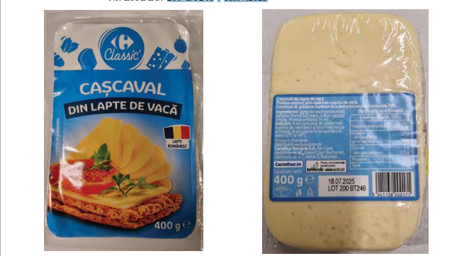 - Produs: Cașcaval din lapte de vacă, marca Carrefour Clasic.