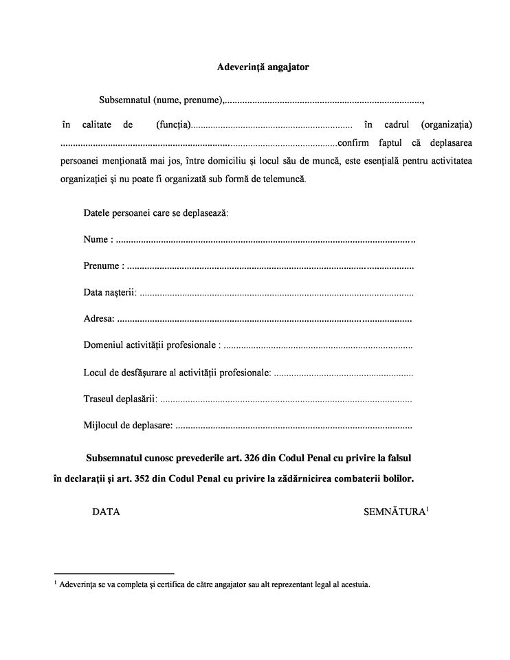FOTO: Cum arată declarația pe propria răspundere și adeverința de la angajator pentru a putea ieși din casă