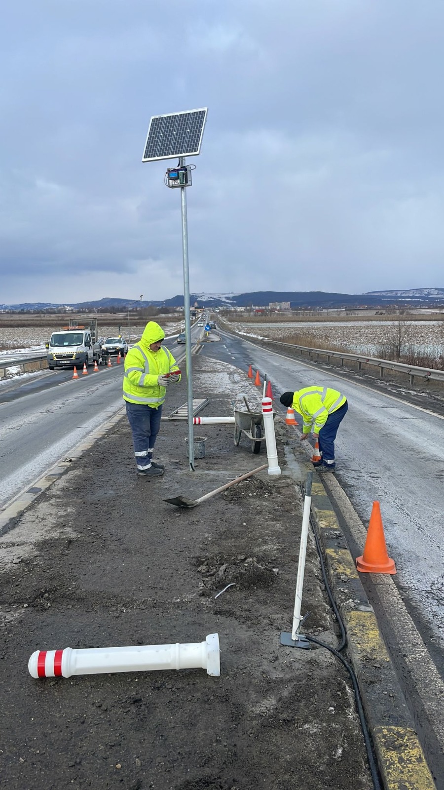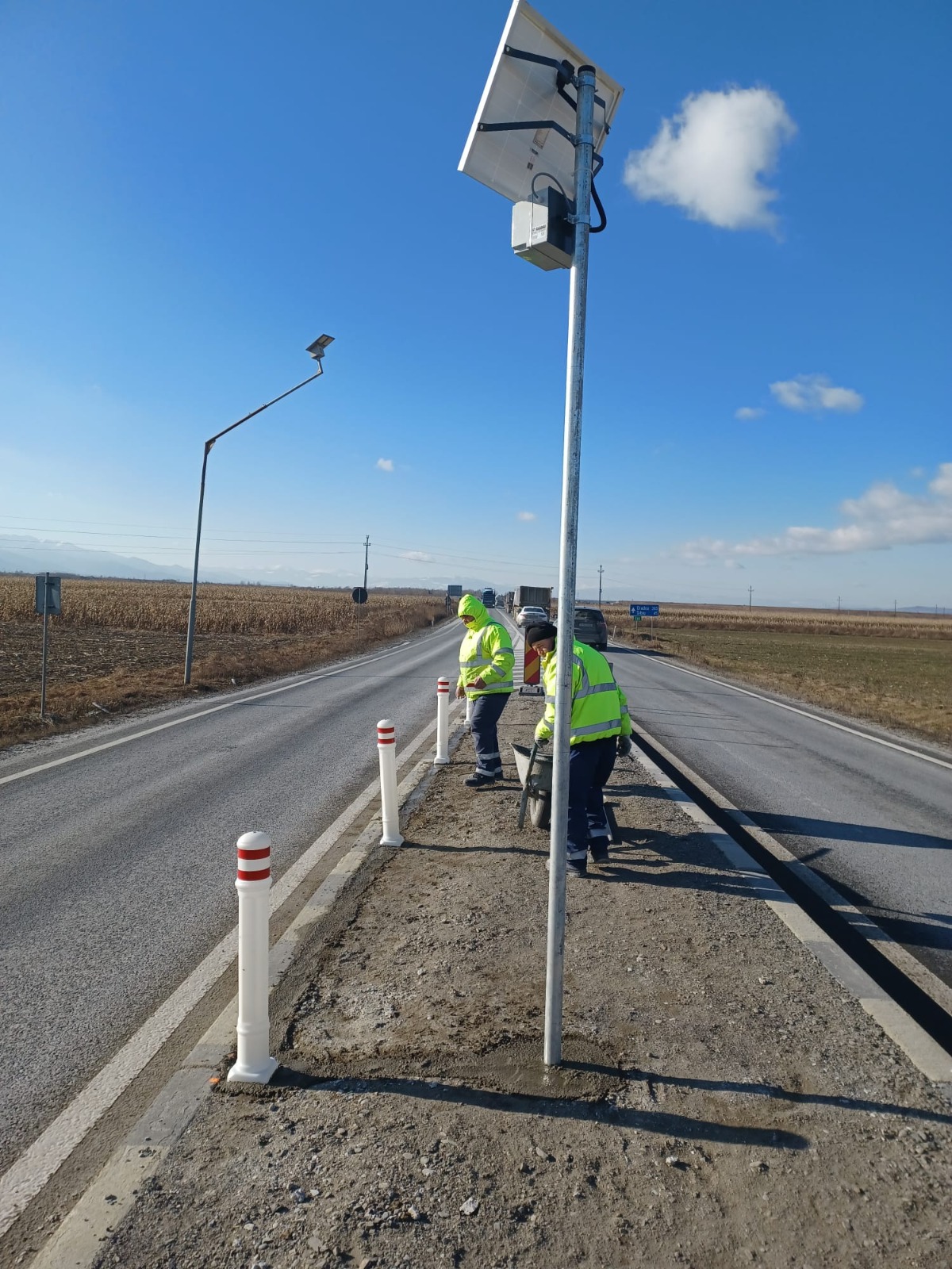 28 de intersecții și insule de calmare vor deveni mai sigure prin montarea unor stâlpișori iluminați care măresc vizibilitatea obstacolelor pe timp de noapte.