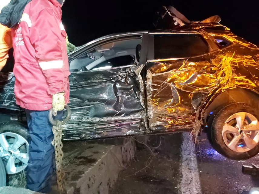 Accidentul s-a produs puțin după miezul nopții, când șoferul unei autoutilitare de transport vehicule, un bărbat de 27 de ani din Argeș, ar fi pierdut controlul din cauza oboselii, a distrus parapetul din beton și s-a răsturnat în râul Olt. Atât șoferul autoutilitarei cât și pasagerul au fost duși la spital.