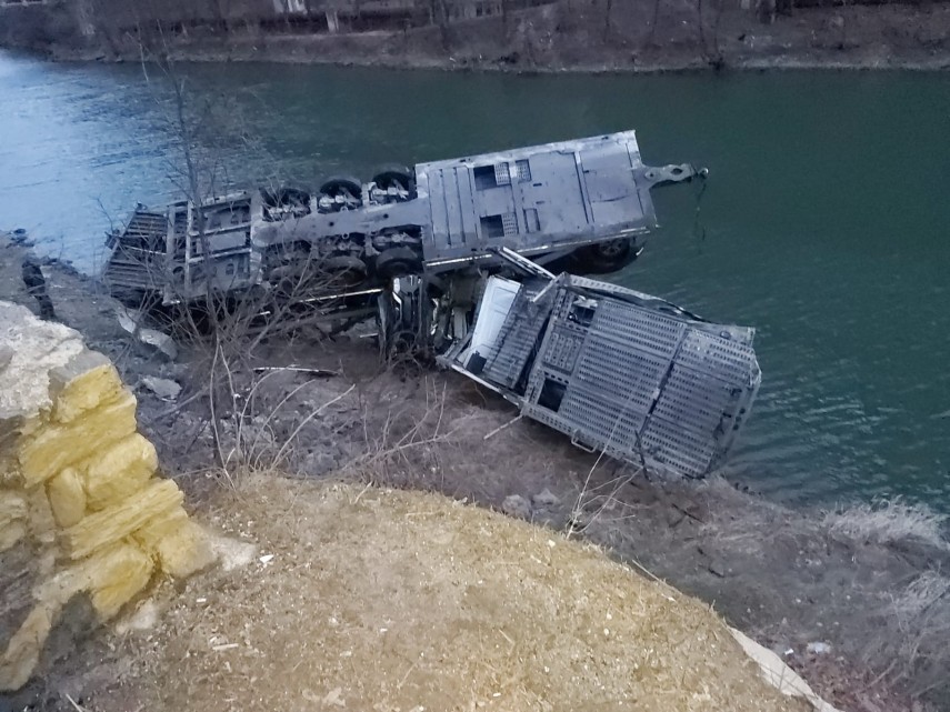 Un autotren care transporta autovehicule ar fi intrat în coliziune cu un autoturism. În urma impactului, autotrenul a căzut în râul Olt. Conducătorul acestuia și pasagerul au fost răniți și transportați la spital.