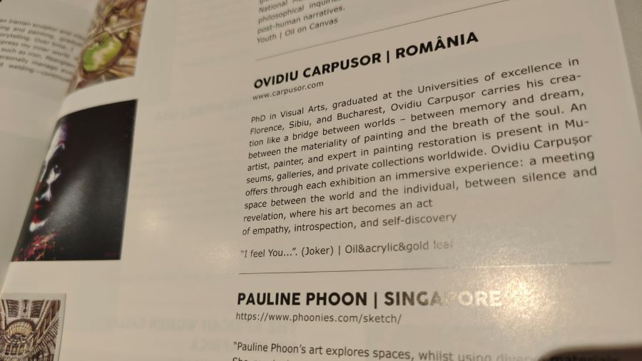 În contrast, reacțiile din spațiul artistic românesc sunt, în multe cazuri, marcate de absență, tăcere ostentativă și ignorare deliberată. Unii colegi de breaslă nu au fost capabili nici măcar de un gest simbolic – un cuvânt, o apreciere (publică sau directă), un banal semn de recunoaștere care nu implica niciun cost, niciun risc. Mai grav, la unele întâlniri internaționale, artiști români care se aflau în expoziții unde si eu participam, au ales să evite salutul sau dialogul, comportându-se ca și cum simpla prezență a încă unui nume românesc pe simeze ar fi constituit o amenințare personală.