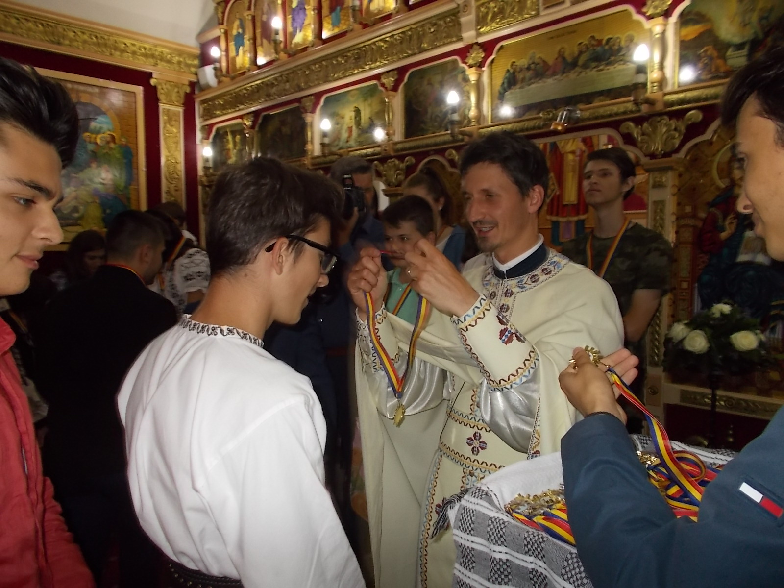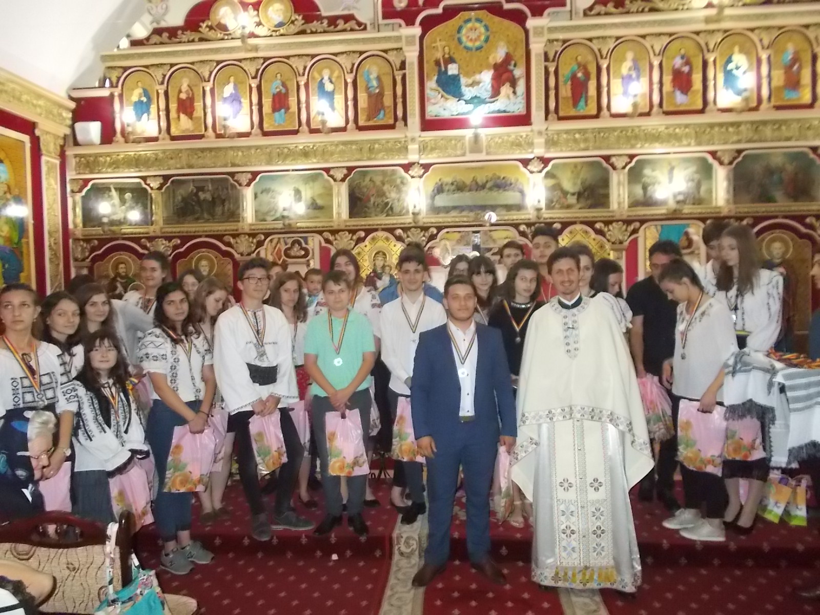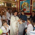 Momente emoționate, duminică, după slujba de la Biserica „Sfinții Apostoli Petru și Pavel și Sfinții Mărturisitori Transilvăneni”, din Cimitirul Ortodox al Municipiului Mediaș. 100 de copii care frecventează lăcașul de cult medieșean au primit din partea preotului Flaviu Fleșer 100 de medalii în Anul Centenarului.