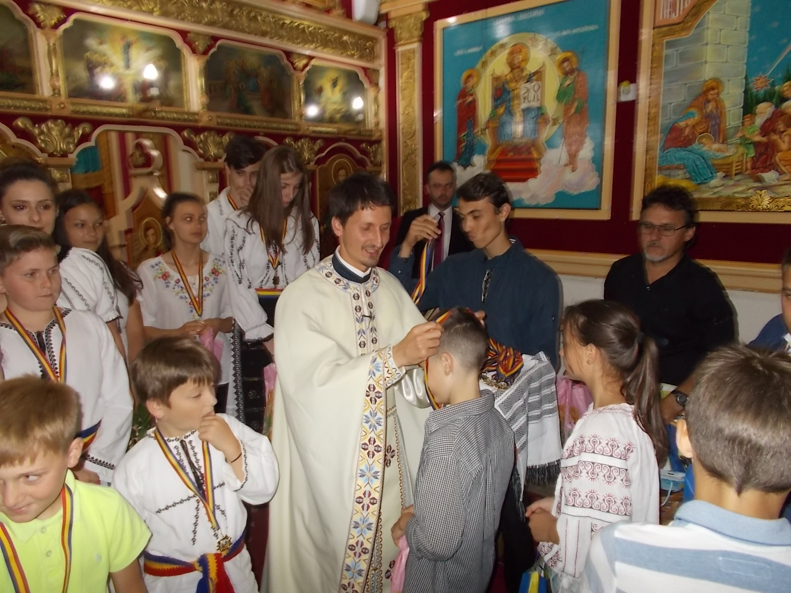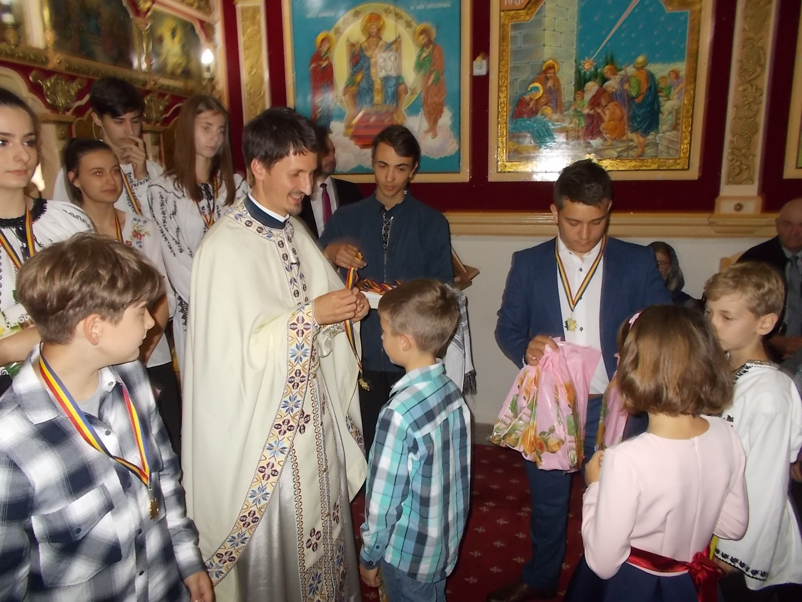 „E anul 2018, un an în care România sărbătorește Centenarul Marii Uniri. Este un an în care ar trebui să vibrăm mai mult din punct de vedere spiritual, dar și din punct de vedere național. Și pentru că sunt 100 de ani de la marea Unire, astăzi am pregătit 100 de medalii cu chipul bisericii noastre și a Centrului Bisericesc închinat Sfântului Iierarh Nectarie, pe care să le oferim copiilor care se apropie de biserica lui Hristos, care caută o educație frumoasă, care se lasă pătrunși de tot ceea ce Dumnezeu le propune în această viață.