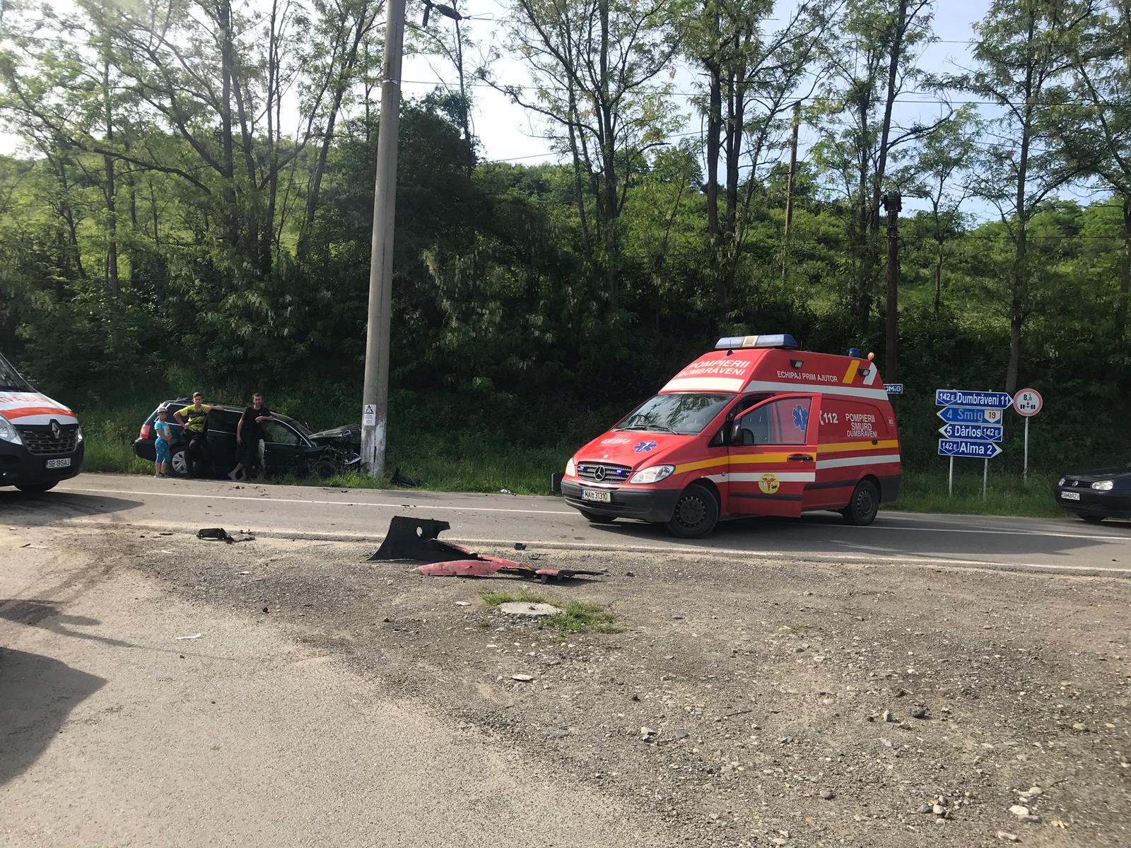 Două persoane au fost rănite, duminică după amiaza, la intersecția Drumului Județean 142 cu Drumul Comunal 19, între Alma și Șmig.