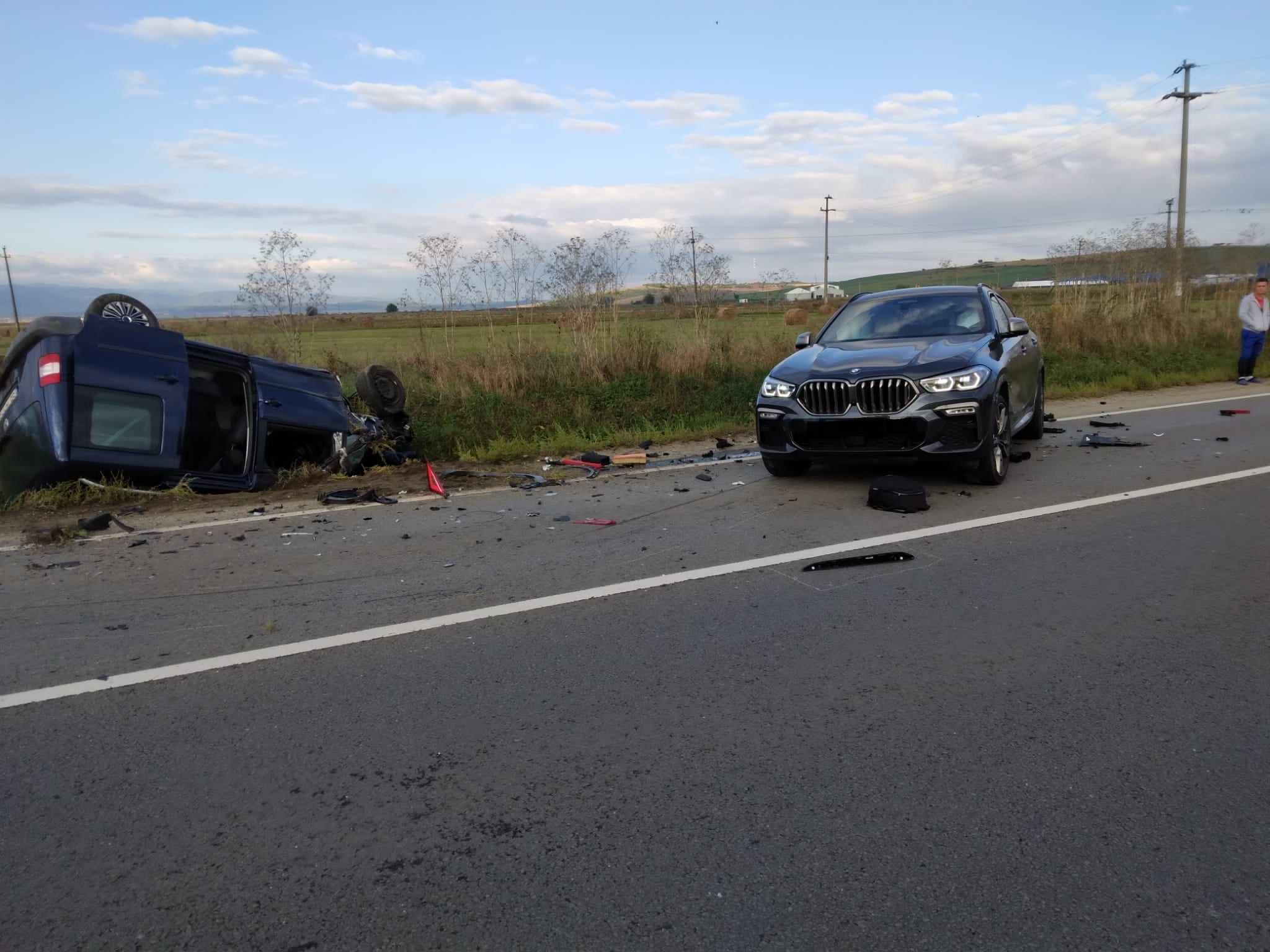 Accident rutier grav la intrarea în Şura Mare, duminică dimineaţa. Un autoturism s-a răsturnat în urma impactului cu o altă maşină, iar unul dintre şoferi a dispărut de la locul accidentului.