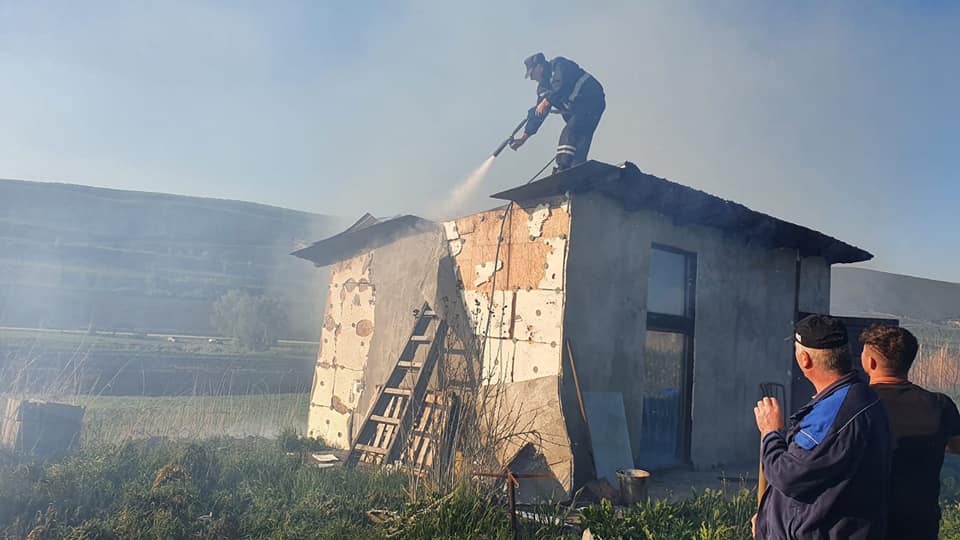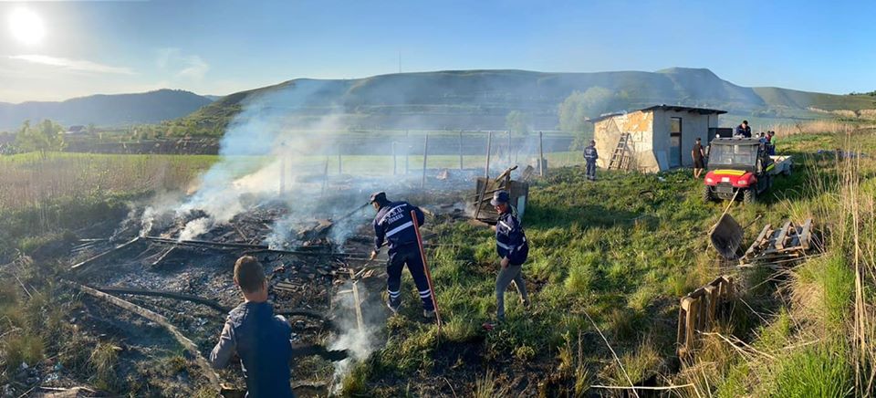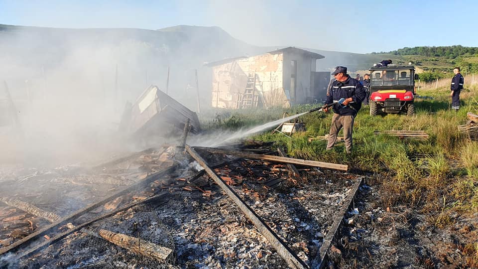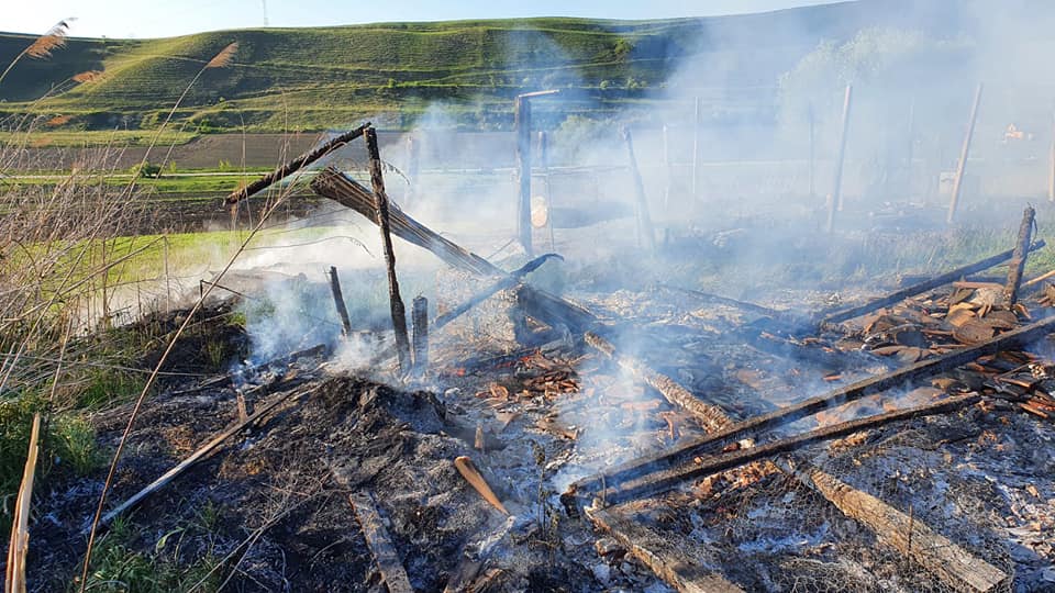 FOTO: Anexă distrusă de incendiu, la Târnava