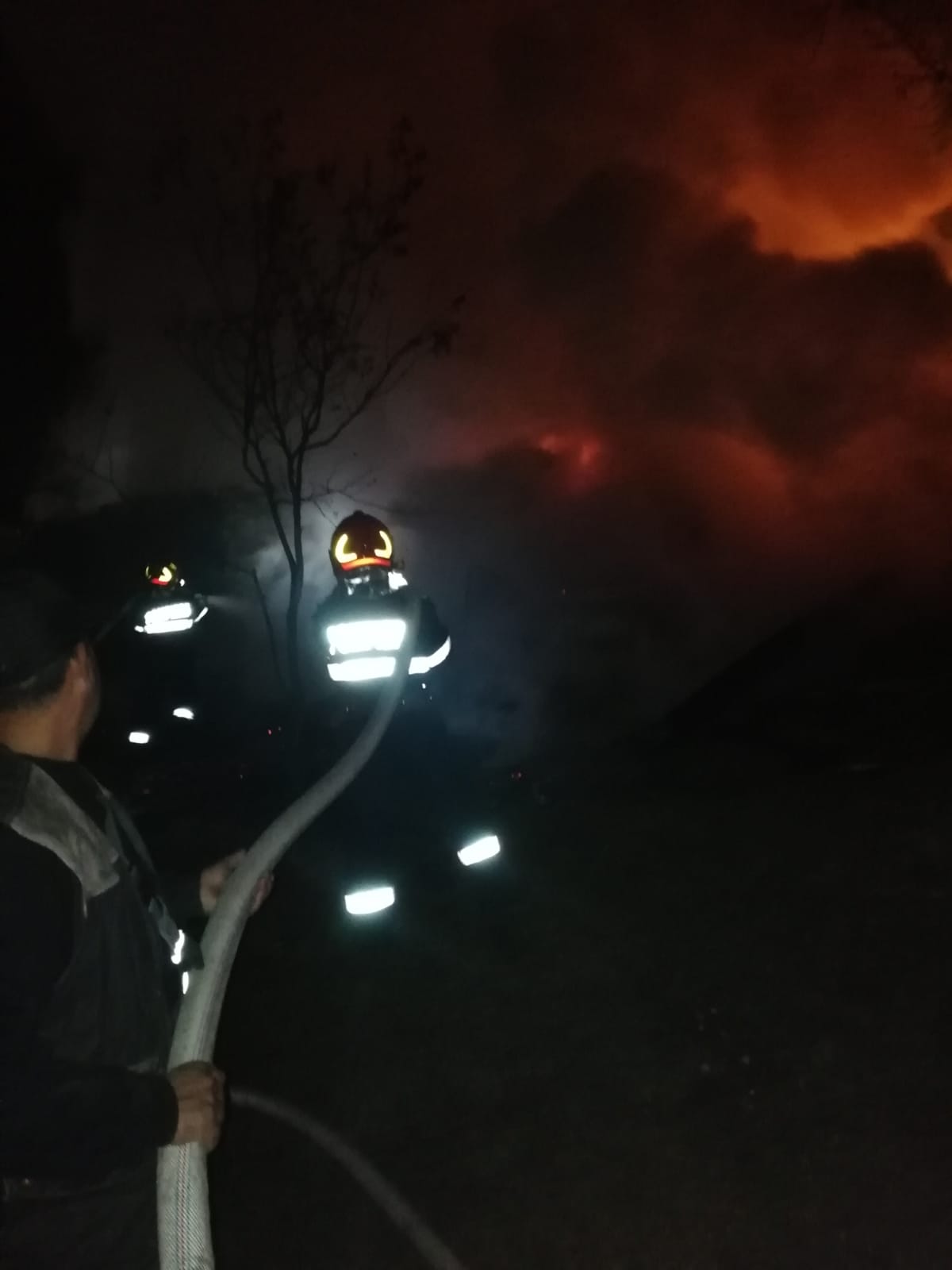 Un incendiu violent produs în noaptea de sâmbătă spre duminică a distrus o șură, iar mai multe animale și păsări au ars.