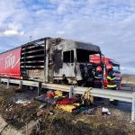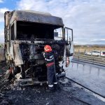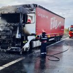 Pompierii au intervenit pe autostrada A1, în zona Aciliu, pentru stingerea unui incendiu izbucnit la un autocamion.