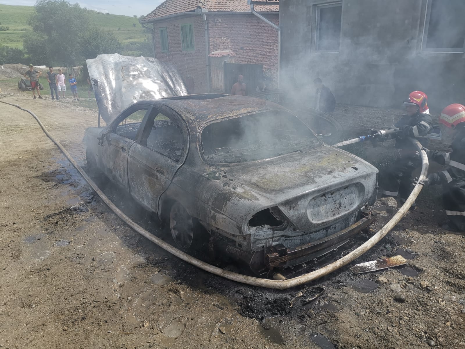 Un autoturism a fost distrus în totalitate în urma unui incendiu produs în localitatea Ludoș.