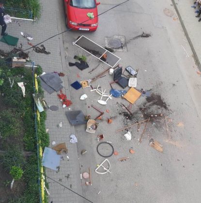 FOTO – Criză de nervi a unui bărbat: Și-a aruncat lucrurile pe geam de la etajul 3