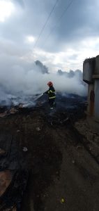 Două echipaje de pompieri din cadrul ISU Sibiu au intervenit, sâmbătă după amiaza, pe strada Ștefan cel Mare din municipiul Sibiu, pentru stingerea unui incendiu izbucnit la deșeurile plastice.
