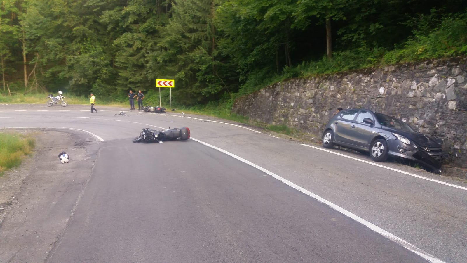 „ISU Sibiu a intervenit de urgență pe DN7C la un accident rutier între un autoturism și două motociclete pentru acordarea asistenței medicale pentru două persoane, sex masculin, conștiente. Bărbații de circa 20 și 38 de ani cu traumatism membru inferior respectiv traumatism lombar și membu inferior au primit îngrijiri medicale și au fost transportați la UPU Sibiu”, a precizat Alina Voina, purtătorul de cuvânt al ISU Sibiu.