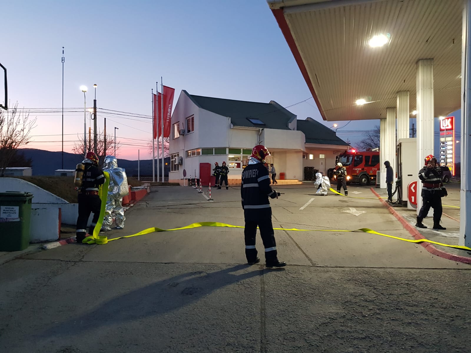 Scenariul a presupus o explozie la unul din rezervoarele de motorină, urmată de incendiu propagat la sediul stației. În cadrul exercițiului au fost angrenați 19 pompieri militari cu două autospeciale de stingere cu apă și spumă și o autospeciala de prim-ajutor calificat SMURD.