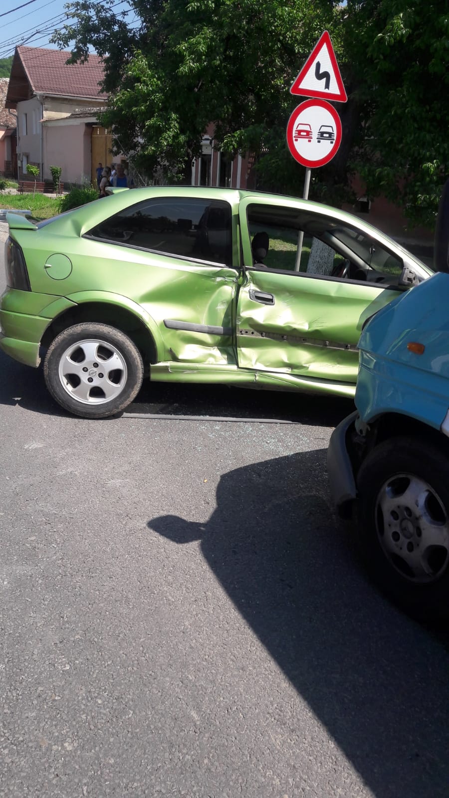 În urma impactului, cele două pasager din autoturism, femeia de 31 de ani și fetița de 4 ani, au ajuns la spital. Accidentul este cercetat acum de lucrătorii Biroului Rutier Mediaș.
