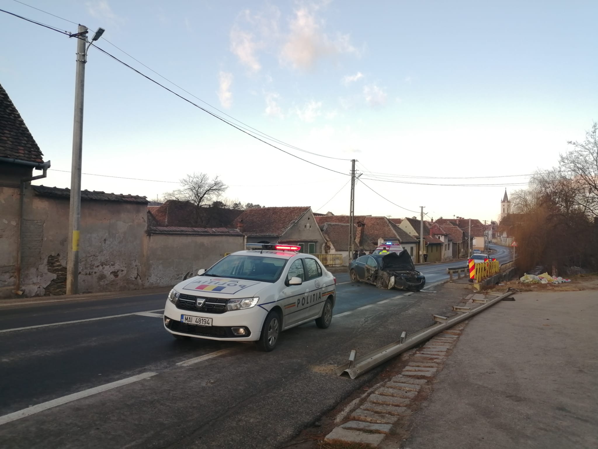 Polițiștii rutieri care s-au deplasat la locul evenimentului au stabilit că un autoturism, condus de o femeie de  28 de ani, din Șelimbăr, s-a izbit de parapetul metalic situat pe marginea șoselei. În urma acestui eveniment, o fetiță de 3 ani din autoturism a fost rănită.