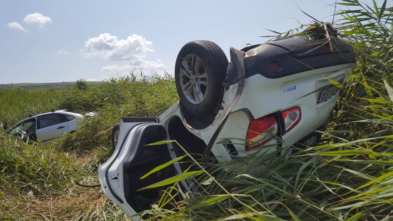 Șoferul unui autoturism s-a angajat în efectuarea unei depășiri fără să se asigure și a intrat în coliziune cu un alt autoturism al cărui șofer depășea regulamentar, cirulând pe aceeași direcție, Mediaș-Sibiu. În urma impactului, cele două autoturisme au ieșit în afara șoselei, unu dintre ele răsturnându-se.