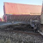 Evenimentul nu s-a soldat cu persoane rănite, însă locomotiva trenului a deraiat”, anunță Centrul Infotrafic.