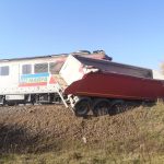 Traficul feroviar a fost blocat pe magistrala 200, în zona Mârșa, după ce un tren militar, încărcat cu tancuri și echipamente militare a lovit în plin un autocamion. Potrivit poliției Sibiu, șoferul autocamionului nu s-a asigurat la o trecere de cale ferată, iar mastodontul a fost lovit de locomotiva trenului. În urma impactului, locomotiva trenului a deraiat. Din fericire, nicio persoană nu a fost rănită.