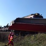 “Circulația feroviară este oprită pe magistrala 200, în zona localității Mârșa, județul Sibiu, unde conducătorul unui autocamion nu s-a asigurat la trecerea la nivel cu calea ferată și a fost surprins și acroșat de un tren marfar care circulă pe relația Sibiu – Brașov.