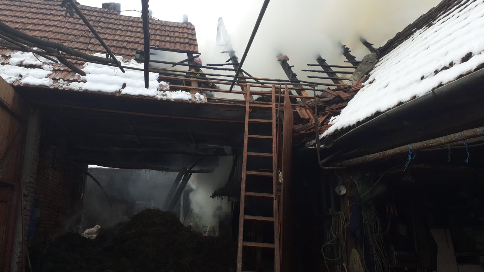 După trei ore de luptă cu flăcările, pompierii au reuşit să stingă focul. În urma incendiului a ars afumatoarea în totalitate și șura de aproximativ 200 de metri pătraţi în proporție de 40% cu fân depozitat. Pompierii au reuşit să limiteze extinderea incendiului şi la alte imobile. Nicio persoană nu a fost rănită în urma incendiului.